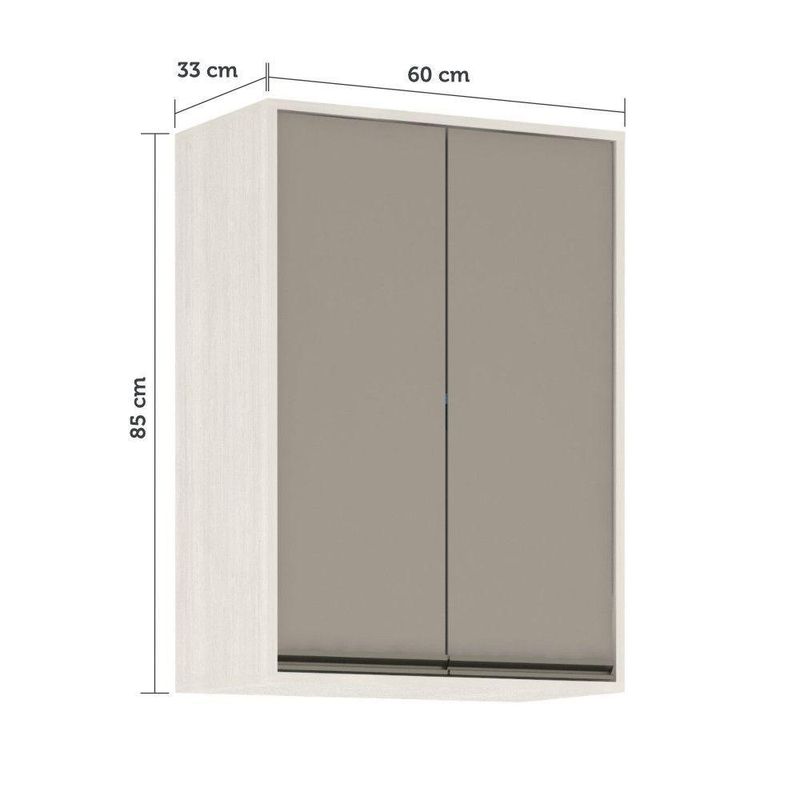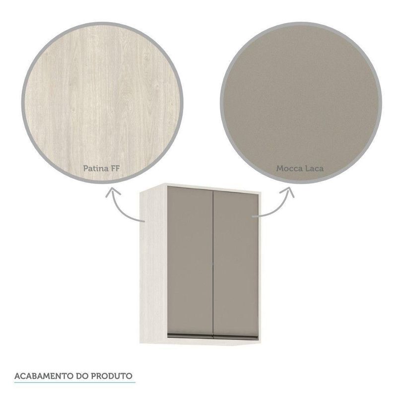 Armário Aéreo De Cozinha 60 Cm 2 Portas Linea Luciane Pátina Ff/mocca LacaO Armario Aereo com 60cm Linea foi desenvolvido aliando beleza e praticidade ao seu ambiente. Conta com 2 portas de abrir, 2 prateleiras internas, puxador em aluminio gola. Acompanha sistema para fixacao na parede. Caracteristicas: Corpo/Caixaria: MDP Patina FF (Finish Foil) Frontais: Avela FF (Finish Foil) Frontais: Mocca Laca Dobradicas: Metalicas Ø35 mm Slowmotion (com amortecedor) Puxadores: Aluminio Gola - Inox Portas: 2 Prateleiras: 2Dimensoes do produto Altura: 85 cm Largura: 60 cm Profundidade: 33 cm Peso: 17,7 kg Garantia de 3 meses direto do fabricante.#8195; Informacoes complementares: Fique de olho: siga sempre as orientacoes do fabricante e utilize seu produto de acordo com o manual. A empresa nao se responsabiliza pelo mau uso do produto, o que pode causar perda da garantia.#8239; Certifique se que seus dados estejam atualizados, como endereco e um telefone valido. A entrega sera realizada no terreo, sendo assim em predios o deslocamento da mercadoria, subir escadas, elevadores ou transporte por guincho para apartamentos fica sob responsabilidade do comprador. Todas as nossas entregas sao realizadas em horario comercial, nao sendo possivel fazer agendamento, sugerimos acompanhar o rastreio do pedido e ter alguem para receber no endereco indicado. Nao nos encarregamos por montagens, desmontagens e outras instalacoes, serao de responsabilidade do comprador.