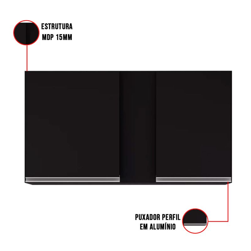 Armário Aéreo de Cozinha Lavanderia 02 Portas Agata Preto 100 Cm - D'Rossi
