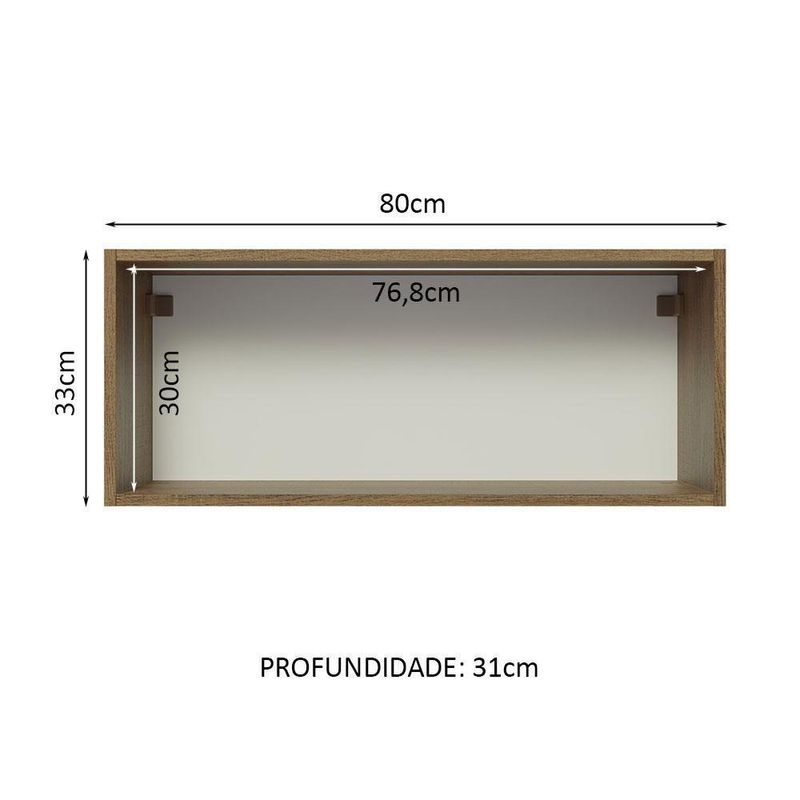 Armário Aéreo Madesa Lux 80 cm 1P Suspensa Rustic e PretoEste Armário Aéreo de 80 cm da linha Lux da Madesa é desenvolvido com materiais de alta qualidade, como puxadores em alumínio e dobradiças metálicas. Possui uma porta basculante que recebe um vidro preto aplicado, muito bonito e moderno. Pode ser utilizado para ampliar sua cozinha e se destaca pela praticidade e pelo bom espaço interno para a organização de louças e utensílios. O acabamento da estrutura interna e externa é no padrão amadeirado Rustic. A porta possui pintura preta. É feito em Pintura Poliéster ecológica, com 7 camadas que aumentam a qualidade e durabilidade do produto. O armário pode ser combinado com outros módulos e com todas as cozinhas da linha Lux da Madesa. O armário precisa ser fixado na parede.Itens Inclusos:- Um (1) aéreo de 33 cm de altura x 80 cm de largura x 31 cm de profundidade com uma (1) porta basculante.Especificações Técnicas:- Marca: Madesa- Código do produto: G258047KLX- Cor: Preto- Produto: Aramário Aéreo - Material: Mdp- Dimensões (AxLxP): 33 x 80 x 31 cm - Peso Aproximado: 15 kg- Garantia: 3 Meses Obs.: O produto segue com manual de instalação e todas as ferragens necessárias para sua montagem.