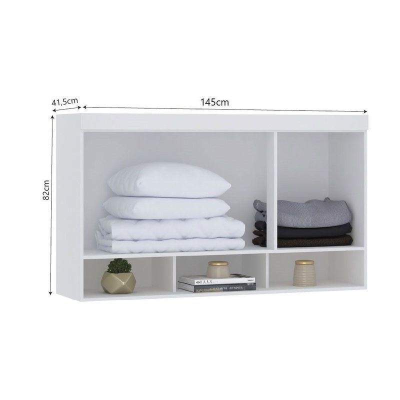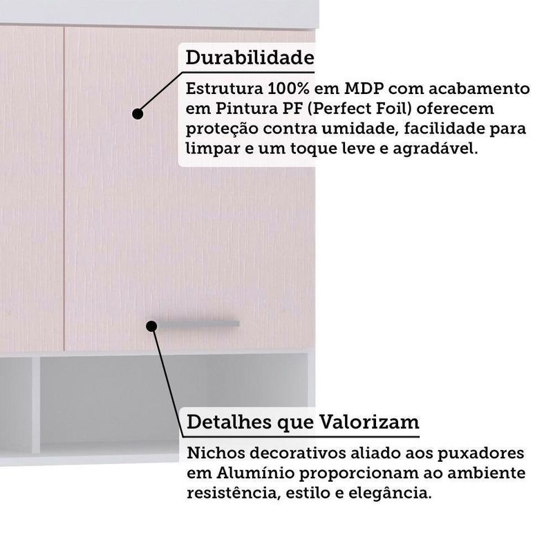 Armário Aéreo Maleiro 145cm 3 Pts Alpes Luciane Móveis Branco Pf/rosa PfA linha de roupeiros modulados Alpes oferece diversas solucoes para o seu projeto, com design clean proporciona ao seu quarto ficar moderno e elegante. Os modulos sao multifuncionais e podem ser montados conforme a sua disponibilidade de espaco.Armario Aereo Maleiro Modulado 145cm 3 Portas Alpes Luciane Moveis Caracteristicas: Estrutura: 100 MDP Acabamento: PF Quantidade de Portas: 3 Tipo de Dobradicas: Metalica Reforcada Tipo de Puxador: Aluminio Prata Sistema de Montagem: Cavilhas, Parafusos e Minifix Itens Inclusos: 1 Armario Aereo, Kit ferragens e Manual de Montagem. Garantia: 3 meses Dimensoes do Produto (Alt x Larg x Prof - cm) 82 x 145 x 41,50 Peso: 36 Kg Fique de olho: Siga sempre as orientacoes do fabricante e utilize seu produto de acordo com o manual. A empresa nao se responsabiliza pelo mau uso do produto, o que pode causar perda da garantia.#8239; Certifique se que seus dados estejam atualizados, como endereco e um telefone valido. A entrega sera realizada no terreo, sendo assim, em predios o deslocamento da mercadoria, subir escadas, elevadores ou transporte por guincho para apartamentos fica sob responsabilidade do comprador. Todas as nossas entregas sao realizadas em horario comercial, nao sendo possivel fazer agendamento, sugerimos acompanhar o rastreio do pedido e ter alguem para receber no endereco indicado. Nao nos encarregamos por montagens, desmontagens e outras instalacoes. Essas demandas serao de responsabilidade do comprador.