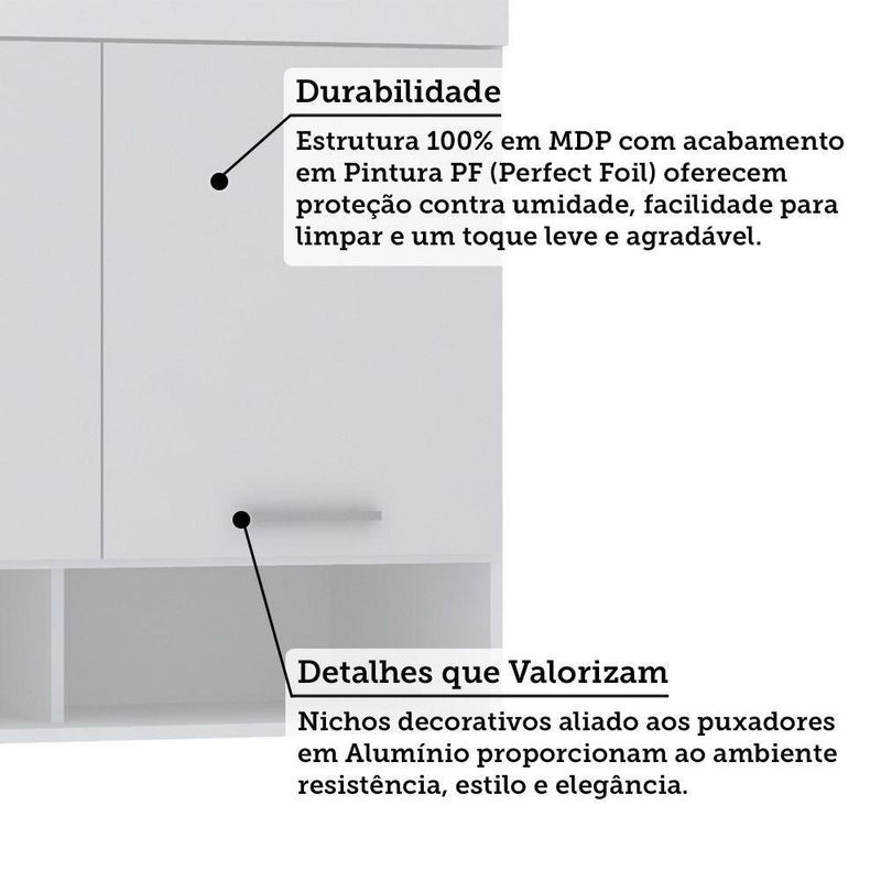 Armário Aéreo Maleiro 165cm 3 Pts Alpes Luciane Móveis Branco Pf/branco PfA linha de roupeiros modulados Alpes oferece diversas solucoes para o seu projeto, com design clean proporciona ao seu quarto ficar moderno e elegante. Os modulos sao multifuncionais e podem ser montados conforme a sua disponibilidade de espaco.Armario Aereo Maleiro Modulado 165cm 3 Portas Alpes Luciane Moveis Caracteristicas: Estrutura: 100 MDP Acabamento: PF Quantidade de Portas: 3 Tipo de Dobradicas: Metalica Reforcada Tipo de Puxador: Aluminio Prata Sistema de Montagem: Cavilhas, Parafusos e Minifix Itens Inclusos: 1 Armario Aereo, Kit ferragens e Manual de Montagem. Garantia: 3 meses Dimensoes do Produto (Alt x Larg x Prof - cm) 82 x 165 x 41,50 Peso: 39,4 Kg Fique de olho: Siga sempre as orientacoes do fabricante e utilize seu produto de acordo com o manual. A empresa nao se responsabiliza pelo mau uso do produto, o que pode causar perda da garantia.#8239; Certifique se que seus dados estejam atualizados, como endereco e um telefone valido. A entrega sera realizada no terreo, sendo assim, em predios o deslocamento da mercadoria, subir escadas, elevadores ou transporte por guincho para apartamentos fica sob responsabilidade do comprador. Todas as nossas entregas sao realizadas em horario comercial, nao sendo possivel fazer agendamento, sugerimos acompanhar o rastreio do pedido e ter alguem para receber no endereco indicado. Nao nos encarregamos por montagens, desmontagens e outras instalacoes. Essas demandas serao de responsabilidade do comprador.