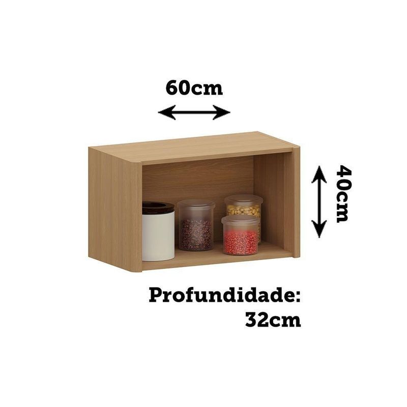 Armário Aéreo Para Geladeira 60cm 2 Portas Lúmia Luciane Móv FreijóArmario Aereo para Geladeira 60cm 2 Portas Lumia Luciane MoveisTransforme sua cozinha com um armario que une praticidade, seguranca e um design moderno! Feito 100 em MDF de alta qualidade, ele possui cantos arredondados que oferecem um visual suave e elegante, alem de garantir maior seguranca ao evitar arestas cortantes. Possui amplo espaco interno para organizar seus utensilios e mantimentos de forma eficiente. As dobradicas Slow Motion com amortecimento garantem um fechamento suave e silencioso das portas, acrescentando conforto e durabilidade ao movel enquanto os puxadores embutidos mantem o visual minimalista e elegante. Perfeito para quem busca um movel funcional, e com um design contemporaneo, esse armario e a escolha ideal para deixar sua cozinha mais bonita e organizada! Caracteristicas: Garantia do Fornecedor: 3 meses Material: MDF 15mm Acabamento: Pintura UV Portas: 2 portas de bater Dobradicas: metalicas 35mm Slowmotion Prateleiras: Nao possui prateleiras, ideal para quem prefere um design clean e pratico. Dimensoes: Altura: 40 cm Largura: 60 cm Profundidade: 32 cm Peso Bruto: 10,8 kg Fique de olho: - Siga sempre as orientacoes do fabricante e utilize seu produto de acordo com o manual. - A empresa nao se responsabiliza pelo mau uso do produto, o que pode causar perda da garantia. - Certifique se que seus dados estejam atualizados, como endereco e um valido. - A sera realizada no terreo, sendo assim, em predios o deslocamento da mercadoria, subir escadas, elevadores ou por guincho para apartamentos fica sob responsabilidade do comprador. - Todas as nossas sao realizadas em horario comercial, nao sendo possivel fazer agendamento, sugerimos acompanhar o rastreio do pedido e ter alguem para receber no endereco indicado. - Nao nos encarregamos por montagens, desmontagens e outras instalacoes. Essas demandas serao de responsabilidade do comprador. - A tonalidade da cor pode variar de acordo com a iluminacao e/ou as configuracoes do seu monitor. - Objetos e decoracoes nao acompanham os produtos, imagens sao meramente ilustrativas.