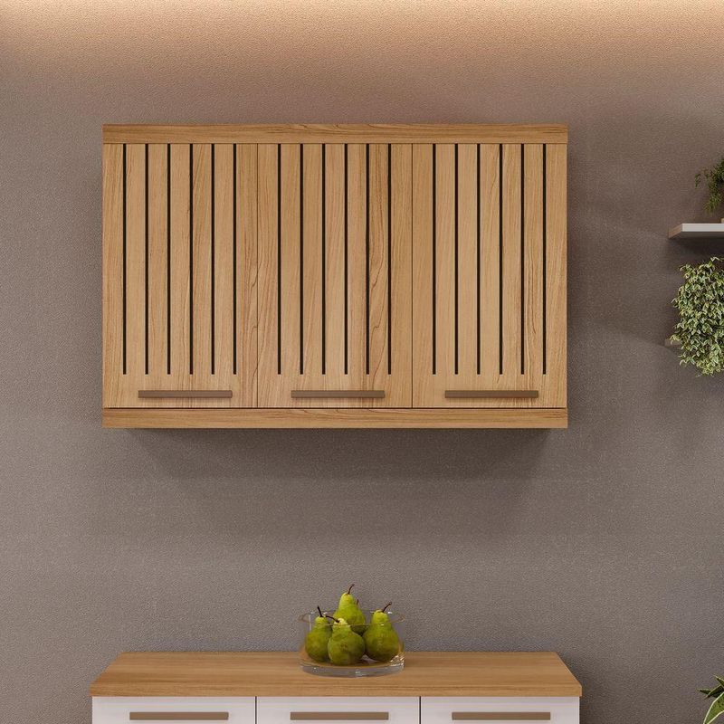 MóveisCozinhaArmárioArmário Aéreo Talismã Ripado 3 Portas Arte Móveis Cinamomo