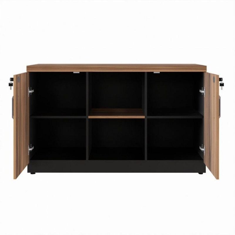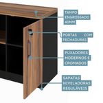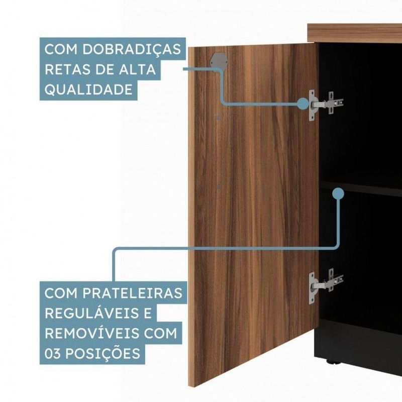 Armário Baixo Office Credenza Web Office Nogal/pretoArmario Baixo Office Credenza Web OfficeOrganizacao e Elegancia para o Seu Espaco O Armario Baixo Credenza oferece uma solucao pratica e sofisticada para a organizacao de ambientes de trabalho ou domesticos. Com seu design moderno e materiais de alta qualidade, ele foi projetado para combinar durabilidade e funcionalidade, atendendo as necessidades de armazenamento com estilo. Principais Qualidades: Tampo Robusto e Duravel: O tampo e confeccionado em MDP (Medium Density Particleboard) de 40 mm de espessura, produzido com particulas selecionadas de madeira de reflorestamento e consolidado com resina sintetica. Esse material e revestido com laminado melaminico de baixa pressao (BP) em ambas as faces, com espessura minima de 0,2 mm, proporcionando resistencia e protecao contra umidade e desgaste. Acabamento Refinado: Todas as bordas do tampo sao finalizadas com fita PVC de 1 mm, aplicada a quente com adesivo hotmelt a base de poliuretano reativo (PUR), que garante uma excelente aderencia e flexibilidade, alem de resistencia ao calor e a umidade. Esse acabamento confere um toque moderno e sofisticado ao movel. Corpo e Portas em MDP: O corpo e as portas do armario sao confeccionados em MDP de 15 mm de espessura, com bordas aparentes finalizadas com fita PVC de 0,45 mm. O revestimento em laminado melaminico de baixa pressao (BP) nas duas faces garante uma superficie lisa e resistente, ideal para o uso diario. Dobradicas de Alta Qualidade com Sistema Soft-Close: As portas sao equipadas com dobradicas de aco de alta resistencia com caneco de 35 mm de diametro, fixadas de forma segura por meio de um alojamento. Essas dobradicas permitem uma abertura de 110, proporcionando facil acesso ao conteudo interno. Alem disso, contam com o sistema soft-close, que garante o fechamento suave e silencioso das portas. Sistema de Travamento Seguro: O armario possui fechadura que trava simultaneamente as duas portas, oferecendo seguranca adicional para os itens armazenados. Puxadores Modernos: Os puxadores em Poliestireno (PS) injetado, com acabamento acetinado, garantem um visual moderno e discreto, alinhando estetica e funcionalidade. Prateleiras Ajustaveis: O armario e dividido em tres compartimentos identicos, cada um equipado com uma prateleira ajustavel. Essas prateleiras oferecem flexibilidade no armazenamento, permitindo ajustar a altura conforme a necessidade. Niveladores de Piso: O movel possui niveladores em polipropileno injetado, com hastes metalicas que permitem ajustes precisos para garantir a estabilidade do armario em pisos irregulares. Design Versatil: O armario se adapta perfeitamente a diferentes ambientes, seja em escritorios, salas de estar ou espacos de home office. Seu design funcional e compacto oferece organizacao sem comprometer o estilo do espaco. Durabilidade Excepcional: Confeccionado com materiais de alta qualidade, como o MDP e o laminado melaminico, o Armario Baixo Credenza e resistente ao desgaste diario e oferece longa durabilidade. Facilidade de Acesso: As dobradicas com abertura de 110 e o sistema soft-close garantem um manuseio pratico e suave das portas, evitando desgastes e garantindo maior vida util ao movel. Flexibilidade de Armazenamento: Com suas prateleiras ajustaveis, o armario permite organizar e armazenar diversos tipos de materiais, desde documentos ate objetos decorativos, adaptando-se as suas necessidades. Caracteristicas: Montagem - nao Produto Entregue Montado - nao Materia Prima - MDP Escala De Brilho - fosco Acabamento - filme termo prensado melaminico Suporta Ate Quantos Kg - Ideal Para Tv - nao Possui Prateleiras? Quantas? - nao Prateleiras Removiveis - Sim Possui Portas? Quantas? - 2 Tipo De Porta - BATER Tipo De Dobradica - sistema soft-close Possui Puxador? Quantos? - 2 Material Do Puxador - PS (Poliestireno) Possui Gavetas? Quantas? - nao Gaveta Com Chave - nao Tipo De Corredica - nao Possui Pes Quantos - nao Pes Regulaveis - nao Altura Dos Pes (cm) - nao Material Dos Pes - nao Possui Rodizios? Quantos? - nao Possui Sapata? Quantas? - Com sapatas de polipropileno e haste metalica, a mesa pode ser nivelada facilmente, garantindo estabilidade mesmo em pisos irregulares. Possui Pistao? Quantos? - nao Possui Nichos? Quantos? - 2 Possui Trilhos? Quantos? - nao Material Do Trilho - nao Acompanha Tampo? Quantos? - Tampo confeccionado em MDP de 40mm Tampo Espessura (mm) - 40mm Necessita Fixacao Na Parede - nao Acompanha Manual - sim Sistema De Montagem: Montagem Simples e Inteligente: A mesa conta com um sistema de fixacao por buchas metalicas e parafusos milimetricos, que facilita tanto a montagem quanto a desmontagem sem danificar o produto, garantindo praticidade e durabilidade. Acompanha Kit Montagem - sim Conteudo Da Embalagem: 1 armario, 1 manual e ferragens Como Utilizar Cuidados Com o Produto Limpeza: Utilize pano umido e produtos neutros. Evite abrasivos. Protecao Solar: Evite exposicao prolongada ao sol para nao desbotar. Objetos Quentes/Cortantes: Use bases de protecao para evitar danos. Peso: Nao exceda o limite de peso recomendado. Contato com Agua: Evite acumulo de liquidos sobre a mesa. Dimensoes: Altura: 73,5cm Largura: 120cm Profundidade: 45cm Peso: 44,32kg do Fabricante: 03 meses