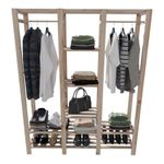 Armário Cabideiro Pinus Leve E Espaçoso 6 Prateleiras Organizadoras - Mais um da Technox.Nosso do momento é nossa linda Arara Closet John Family com Sapateira 6 Prateleiras de alta resistência, podendo ser utilizado para quartos, lavanderias, closets e expositores em geral: - Compra direto de ; - Perfeita para organizar e otimizar espaços; - Esta estante é feita com madeira de reflorestamento, onde aparece a textura da madeira. Por ser feita de madeira maciça pode haver pequenas diferenças na tonalidade. Ficha Técnica: DIMENSÕES : Altura: - 170cm Largura: - 31,5 Comprimento - 140cm Nível de Montagem - Intermediário.Peso - 17kg ITENS INCLUSOS: Um Armário Closet em madeira maciça de Pinus - ITENS DECORATIVOS NÃO INCLUSOS. - Armário em madeira maciça reflorestada de Pinus proveniente de Exportação;- Possui dois cabideiros, três prateleiras, ampla sapateira e maleiro;- Fabricação Própria.- Perfeita para organizar e otimizar espaços como quartos, lavanderias, closets e áreas comerciais; - Leve e de fácil montagem;