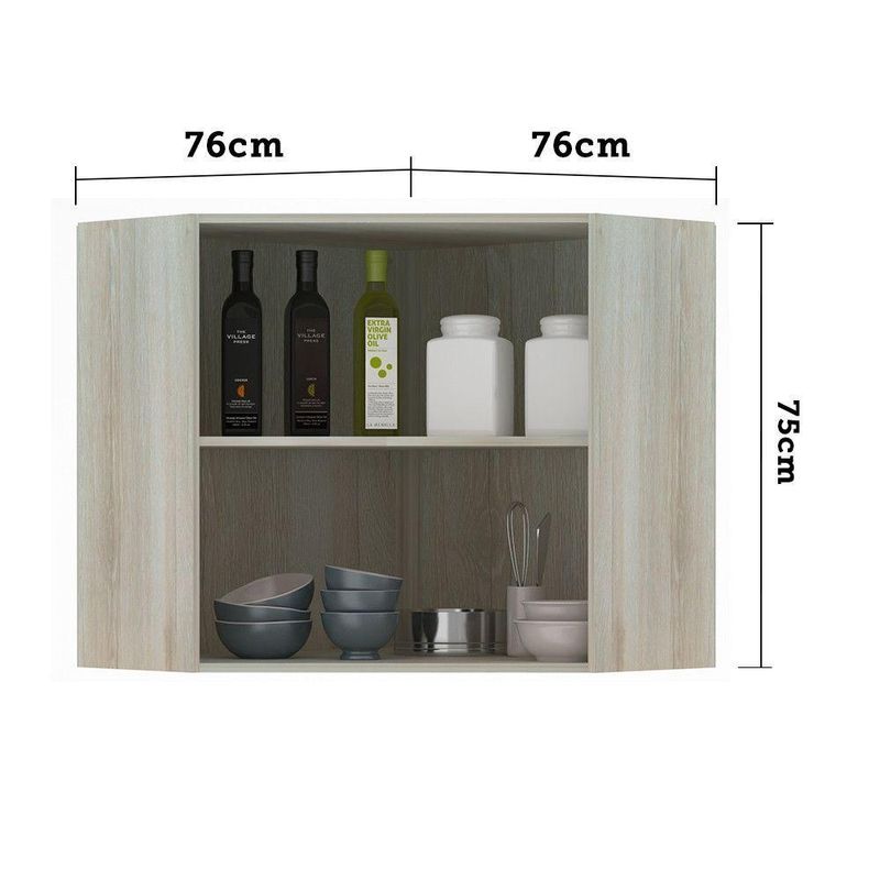Armário Canto Diagonal Luciane 2 Portas Luci Legno Crema Com Verde JadeArmário Luciane Luci perfeito para sua cozinha. Características: Corpo/Caixaria: MDP Legno Crema FF. Frontais: MDP - BP. Dobradiças: Ø35 mm. Puxadores: Alumínio Gola Champagne. Prateleiras: 1 Portas: 2 Itens inclusos: Manual de montagem, ferragens e acessórios. Dimensões do produto: Altura: 75 cm Largura: 76 cm Profundidade: 76 cm Peso: 29,7 kg Garantia de 3 meses direto do fabricante. Informações complementares: Fique de olho: siga sempre as orientações do fabricante e utilize seu produto de acordo com o manual. A empresa não se responsabiliza pelo mau uso do produto, o que pode causar perda da garantia.#8239; Certifique se que seus dados estejam atualizados, como endereço e um telefone válido. A entrega será realizada no térreo, sendo assim em prédios o deslocamento da mercadoria, subir escadas, elevadores ou transporte por guincho para apartamentos fica sob responsabilidade do comprador. Todas as nossas entregas são realizadas em horário comercial, não sendo possível fazer agendamento, sugerimos acompanhar o rastreio do pedido e ter alguém para receber no endereço indicado. Não nos encarregamos por montagens, desmontagens e outras instalações, serão de responsabilidade do comprador.