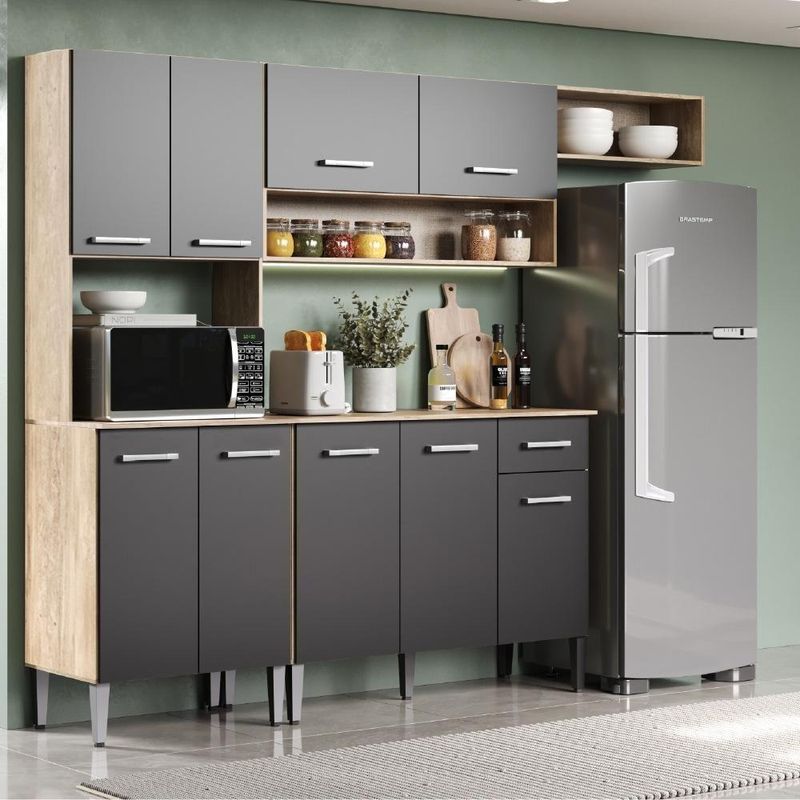 Armário Cozinha Compacta Arizona Smart Carraro - Carvalho/preto Carvalho/pretoA Cozinha Compacta Daiana da Carraro é o item perfeito para quem está procurando funcionalidade, organização e estilo para ambientes compactos. O produto é composto por uma torre quente de micro-ondas, um balcão de pia com gaveteiro, um armário aéreo de 2 portas com espaço para porta temperos e um nicho.Especificações do Produto:Medidas totais: Largura: 225 cm | Altura: 182 cm | Profundidade: 44 cmMedidas da torre quente: Largura: 60 cm | Altura: 182 cm | Profundidade: 44 cmMedidas do balcão: Largura: 105 cm | Altura: 84,5 cm | Profundidade: 44 cmMedidas do aéreo: Largura: 105 cm | Altura: 55 cm | Profundidade: 27 cmMedidas do Nicho: Largura: 60 cm | Altura: 22 cm | Profundidade: 27 cmPeso total: 70,2 KgMatéria Prima: BPAcessórios: Pés com regulagem de altura Material: MDP | Estado de Origem: RS | Peso do produto: | Altura do Produto: 182,5 | Largura do produto: 289 | Profundidade do produto: 44 | Peso do Produto Com Embalagem: | Altura do Produto Com Embalagem: | Largura do Produto Com Embalagem: | Profundidade do Produto Com Embalagem: | Produto precisa de Montagem?: Não | Nome: Armário Cozinha Compacta Arizona Smart Carraro | Instruções/Cuidados: Nenhuma Informação | Conteúdo da Embalagem: Armário Cozinha Compacta Arizona Smart Carraro | Nome do Simples no Fornecedor: Armário Cozinha Compacta Arizona Smart Carvalho Carraro | Tipo de móveis de cozinha: Armário/Balcão | Material para Filtro: MDP | Cor: Carvalho | Descrição do tamanho: 182,5 x 289 x 44