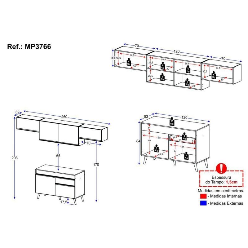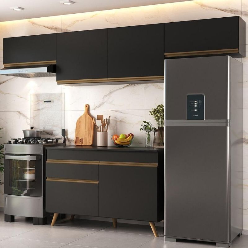 Armário Cozinha Modulada Compacta 260cm Com Balcão Veneza Multimóveis Mp3766 Preto/douradoMais espaço, mais organização e mais liberdade para montar do seu jeito. A Cozinha Modulada Compacta 260cm com Balcão Veneza Multimóveis MP3766 combina módulos versáteis com soluções inteligentes para deixar tudo ao alcance das mãos e sua cozinha sempre pronta para qualquer momento. O design elegante remete a uma cozinha planejada.Diferenciais:- 3 anos de garantia contra defeitos de fabricação e material.- Produzida em madeira de reflorestamento (MDP 12/15mm): garante resistência e consciência ambiental.- Acabamento acetinado (cerca de 20% de brilho): traz sofisticação e facilita a limpeza.- Composta por 4 módulos individuais: oferece liberdade para compor a cozinha do seu jeito.- Balcão com tampo de 15mm incluso: perfeito para servir de apoio no preparo das suas refeições (montagem somente conforme as imagens - não reversível).- 4 portas com dobradiças metálicas: amplo espaço interno para organizar itens de cozinha.- 2 portas basculantes com pistão a gás: conforto e segurança ao abrir e fechar.- 1 gaveta com corrediças metálicas: ideal para talheres e utensílios essenciais.- Espaços dedicados para fogão e geladeira (não inclusos), otimizando o layout da cozinha.- Puxadores em ABS com design alongado: modernos e confortáveis ao toque.- Pés em polipropileno no estilo retrô: charme extra e estabilidade aos módulos.Conteúdo da Embalagem:1 (um) Armário Aéreo 120cm2 (dois) Armários Aéreos 70cm1 (um) Balcão com Tampo 120cmManual de MontagemKit FerragemDimensões do Produto Montado:Altura: 203cm | Largura: 260cm | Profundidade: 53cm (Balcão) - 32cm (Aéreos)*Espaço para Fogão/Geladeira - Altura: 170cm | Largura: 70cm*Você pode consultar as medidas detalhadas na imagem técnica do produto.*As cores do produto podem sofrer variações de tonalidade de acordo com as configurações do seu dispositivo.*Aqui na Loja Multimóveis, você pode concluir sua compra facilmente com toda segurança. A entrega é garantida e você está em 1° lugar.Imagem meramente ilustrativa. Decoração e eletros não acompanham o produto.O produto será entregue desmontado e não disponibilizamos o serviço de montagem. Acabamento: Pintura UV | Tonalidade: Preto | Material: MDP | Referência do Modelo: MP3766 | Coleção: Veneza | Instruções de Cuidado: Limpar com pano seco para retirar o pó. Não utilizar produtos químicos ou abrasivos a limpeza. Não aplicar lustra móveis. | Sistema de Montagem: O produto acompanha manual de montagem juntamente com kit ferragem. O produto será entregue desmontado e não disponibilizamos o serviço de montagem. | Produto Composto por: 1 armário aéreo 120cm, 2 armários aéreos 70cm, 1 balcão com tampo 120cm, manual de montagem e kit ferragem. | Altura Montado: 203 | Largura Montado: 260 | Profundidade Montado: 53 | Tamanho (L x A x P): 260 x 203 x 53 | Fabricante: Multimóveis | Requer Montagem: Sim | Quantidade de Portas: 6 | Quantidade de Gavetas: 1 | Quantidade de Prateleiras: 2 | Quantidade de Puxadores: 7 | Quantidade de Pés: 5 | Porta com Vidro: Não | Corrediça: Metálica | Material do Puxador: ABS | Material dos Pés: Polipropileno | Acompanha Pia Inox: Não | Balcão 120 cm compatível para uso de pia: Não | Tampo Incluso: Sim | Quantidade de Tampos: 1 | Material do Tampo: MDP | Espessura do Tampo: 1.5 | Com Prateleiras: Sim | Produto: Cozinha | Tipo: Modular | RBN: 17100674011 | Altura (cm): 203 cm | Largura (cm): 260 cm | Profundidade (cm): 53 cm | Acessórios incluídos: N/A | Altura do Produto com Embalagem: 27 cm | Ubicação do móvel: Não aplica | Largura do Produto com Embalagem: 65 cm | Comprimento do Produto com Embalagem: 125 cm | Peso do Produto com Embalagem: 67000 g | Tempo de Garantia: 3 meses | Destaque 1: Produzida em MDP: maior durabilidade e resistência. | Destaque 2: Tamanho do produto montado (L x A x P): 260 x 203 x 53 cm | Destaque 3: Módulos individuais: possibilitam a montagem conforme a disponibilidade do espaço. | Destaque 4: 6 portas e 1 gaveta com corrediças metálicas: amplo espaço interno para organização. | Destaque 5: Balcão com tampo de 15mm incluso. | Tipo de móveis de cozinha: Cozinha completa | Marca: Multimóveis | Materiais do corpo: MDP | Materiais das portas: MDP | Altura do armário: 54 cm | Largura do armário: 260 cm | Profundidade do armário: 32 cm | Altura do balcão: 84 cm | Largura do balcão: 120 cm | Profundidade do balcão: 53 cm | Modelo detalhado: N/A | Peso (kg): 67 kg | Estilo: Moderno | Capacidade máxima de peso: N/A | Com Pés ajustáveis: Não | Quantidade de caixas de embalagem: 03 | Peso do Produto: 67 | É personalizado: Não | Baterias são necessárias?: Não | Certificação de teste externa: Não aplicável | Is Fragile: Não | Peso do item: unit=kilograms;value=67 | Dimensões do item P x L x A: depth#value=53;depth#unit=centimeters;width#value=260;width#unit=centimeters;height#value=203;height#unit=centimeters | Quantidade de itens: 1 | Número da peça: MP3766.130 | Duração da Garantia: 3 Meses | Montagem: Necessita Montagem | Tipo de Garantia: Garantia do Fabricante | Inclui manual de montagem: Sim | Palavras-chave: armario de cozinha, cozinha completa, cozinha compacta, cozinha planejada, cozinha modulada, balcao de cozinha, balcao de pia, cozinha modular, balcao cozinha, armario cozinha | Peso do balcão (kg): N/A | Peso do armário (kg): N/A | Componentes incluídos: Kit de instalação | Tipo da embalagem do vendor: Sem embalagem adicional | Cor: Preto/Dourado