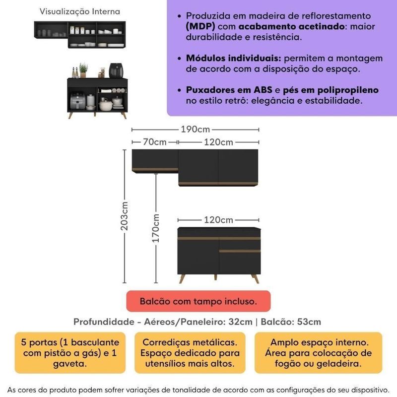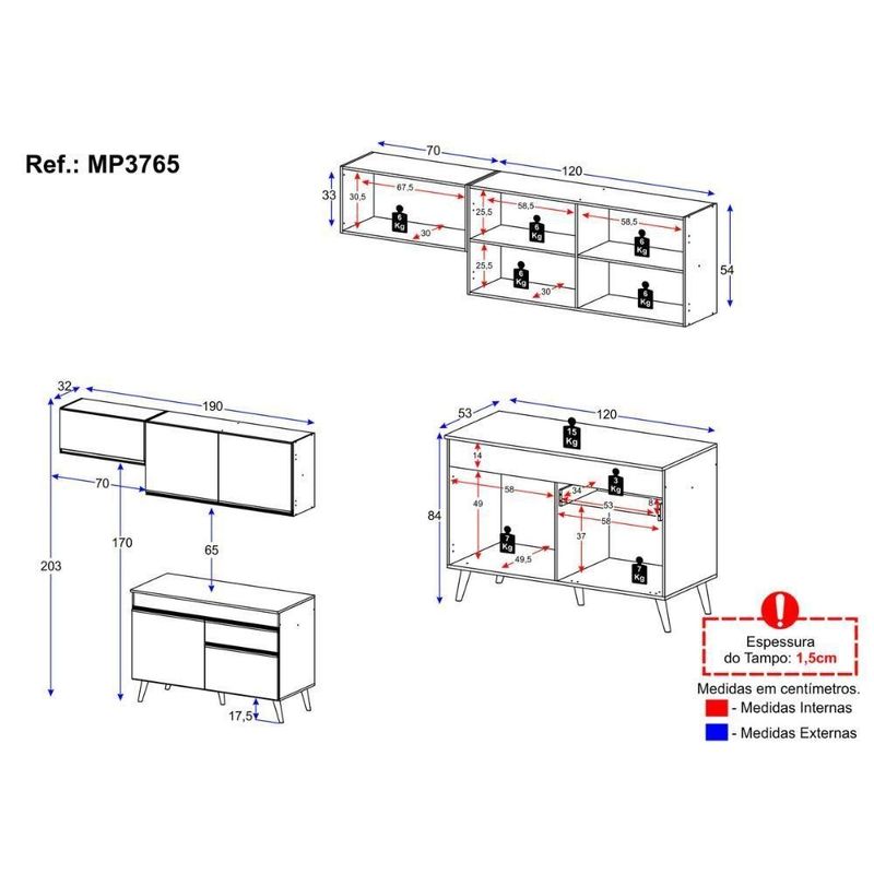 Armário Cozinha Modulada Compacta Com Balcão 3 Peças Veneza Multimóveis Mp3765 Preto/douradoSe você busca funcionalidade e visual moderno, a Cozinha Modulada Compacta com Balcão 3 Peças Veneza Multimóveis MP3765 é a escolha ideal. Com design bem distribuído e amplo espaço de armazenamento, remetendo a uma cozinha planejada, ela valoriza o ambiente e promove um espaço mais bonito e convidativo.Diferenciais:- 3 anos de garantia contra defeitos de fabricação e material.- Produzida em madeira de reflorestamento (MDP 12/15mm): garante resistência e consciência ambiental.- Acabamento acetinado (cerca de 20% de brilho): traz sofisticação e facilita a limpeza.- Composta por 3 módulos individuais: oferece liberdade para compor a cozinha do seu jeito.- Balcão com tampo de 15mm incluso: perfeito para servir de apoio no preparo das suas refeições (montagem somente conforme as imagens - não reversível).- 4 portas com dobradiças metálicas: amplo espaço interno para organizar itens de cozinha.- 1 porta basculante com pistão a gás: conforto e segurança ao abrir e fechar.- 1 gaveta com corrediças metálicas: ideal para talheres e utensílios essenciais.- Espaço dedicado para fogão ou geladeira (não inclusos), otimizando o layout da cozinha.- Puxadores em ABS com design alongado: modernos e confortáveis ao toque.- Pés em polipropileno no estilo retrô: charme extra e estabilidade aos módulos.Conteúdo da Embalagem:1 (um) Armário Aéreo 120cm1 (um) Armário Aéreo 70cm1 (um) Balcão com Tampo 120cmManual de MontagemKit FerragemDimensões do Produto Montado:Altura: 203cm | Largura: 190cm | Profundidade: 53cm (Balcão) - 32cm (Aéreos)*Espaço para Fogão/Geladeira - Altura: 170cm | Largura: 70cm*Você pode consultar as medidas detalhadas na imagem técnica do produto.*As cores do produto podem sofrer variações de tonalidade de acordo com as configurações do seu dispositivo.*Aqui na Loja Multimóveis, você pode concluir sua compra facilmente com toda segurança. A entrega é garantida e você está em 1° lugar.Imagem meramente ilustrativa. Decoração e eletros não acompanham o produto.O produto será entregue desmontado e não disponibilizamos o serviço de montagem. Acabamento: Pintura UV | Tonalidade: Preto | Material: MDP | Referência do Modelo: MP3765 | Coleção: Veneza | Instruções de Cuidado: Limpar com pano seco para retirar o pó. Não utilizar produtos químicos ou abrasivos a limpeza. Não aplicar lustra móveis. | Sistema de Montagem: O produto acompanha manual de montagem juntamente com kit ferragem. O produto será entregue desmontado e não disponibilizamos o serviço de montagem. | Produto Composto por: 1 armário aéreo 120cm, 1 armário aéreo 70cm, 1 balcão com tampo 120cm, manual de montagem e kit ferragem. | Altura Montado: 203 | Largura Montado: 190 | Profundidade Montado: 53 | Tamanho (L x A x P): 190 x 203 x 53 | Fabricante: Multimóveis | Requer Montagem: Sim | Quantidade de Portas: 5 | Quantidade de Gavetas: 1 | Quantidade de Prateleiras: 2 | Quantidade de Puxadores: 6 | Quantidade de Pés: 5 | Porta com Vidro: Não | Corrediça: Metálica | Material do Puxador: ABS | Material dos Pés: Polipropileno | Acompanha Pia Inox: Não | Balcão 120 cm compatível para uso de pia: Não | Tampo Incluso: Sim | Quantidade de Tampos: 1 | Material do Tampo: MDP | Espessura do Tampo: 1.5 | Com Prateleiras: Sim | Produto: Cozinha | Tipo: Modular | RBN: 17100674011 | Altura (cm): 203 cm | Largura (cm): 190 cm | Profundidade (cm): 53 cm | Acessórios incluídos: N/A | Altura do Produto com Embalagem: 20 cm | Ubicação do móvel: Não aplica | Largura do Produto com Embalagem: 65 cm | Comprimento do Produto com Embalagem: 125 cm | Peso do Produto com Embalagem: 60000 g | Tempo de Garantia: 3 meses | Destaque 1: Produzida em MDP: maior durabilidade e resistência. | Destaque 2: Tamanho do produto montado (L x A x P): 190 x 203 x 53 cm | Destaque 3: Módulos individuais: possibilitam a montagem conforme a disponibilidade do espaço. | Destaque 4: 5 portas e 1 gaveta com corrediças metálicas: amplo espaço interno para organização. | Destaque 5: Balcão com tampo de 15mm incluso. | Tipo de móveis de cozinha: Cozinha completa | Marca: Multimóveis | Materiais do corpo: MDP | Materiais das portas: MDP | Altura do armário: 54 cm | Largura do armário: 190 cm | Profundidade do armário: 32 cm | Altura do balcão: 84 cm | Largura do balcão: 120 cm | Profundidade do balcão: 53 cm | Modelo detalhado: N/A | Peso (kg): 60 kg | Estilo: Moderno | Capacidade máxima de peso: N/A | Com Pés ajustáveis: Não | Quantidade de caixas de embalagem: 02 | Peso do Produto: 60 | É personalizado: Não | Baterias são necessárias?: Não | Certificação de teste externa: Não aplicável | Is Fragile: Não | Peso do item: unit=kilograms;value=60 | Dimensões do item P x L x A: depth#value=53;depth#unit=centimeters;width#value=190;width#unit=centimeters;height#value=203;height#unit=centimeters | Quantidade de itens: 1 | Número da peça: MP3765.130 | Duração da Garantia: 3 Meses | Montagem: Necessita Montagem | Tipo de Garantia: Garantia do Fabricante | Inclui manual de montagem: Sim | Palavras-chave: armario de cozinha, cozinha completa, cozinha compacta, cozinha planejada, cozinha modulada, balcao de cozinha, balcao de pia, cozinha modular, balcao cozinha, armario cozinha | Peso do balcão (kg): N/A | Peso do armário (kg): N/A | Componentes incluídos: Kit de instalação | Tipo da embalagem do vendor: Sem embalagem adicional | Cor: Preto/Dourado