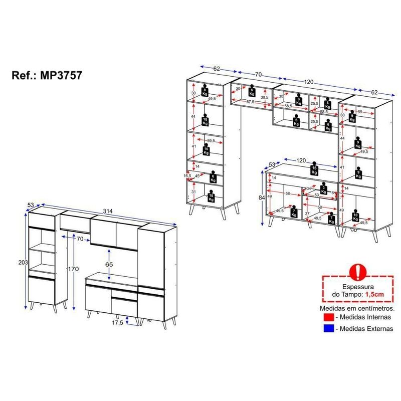 Armário Cozinha Modulada Completa 314cm Com Balcão Veneza Multimóveis Mp3757 Preto/douradoTransforme sua rotina e o coração da casa com a Cozinha Modulada Completa 314cm com Balcão Veneza Multimóveis MP3757 — um conjunto pensado para quem valoriza beleza, praticidade e aquele prazer gostoso de ter tudo no lugar. Com design que remete a uma cozinha planejada, ela se adapta ao seu espaço e deixa o ambiente mais acolhedor, organizado e funcional todos os dias.Diferenciais:- 3 anos de garantia contra defeitos de fabricação e material.- Produzida em madeira de reflorestamento (MDP 12/15mm): garante resistência e consciência ambiental.- Acabamento acetinado (cerca de 20% de brilho): traz sofisticação e facilita a limpeza.- Composta por 5 módulos individuais: oferece liberdade para compor a cozinha do seu jeito.- Balcão com tampo de 15mm incluso: perfeito para servir de apoio no preparo das suas refeições (montagem somente conforme as imagens - não reversível).- Nichos para forno e micro-ondas (suportam até 10kg), trazendo praticidade à rotina.- 7 portas com dobradiças metálicas: amplo espaço interno para organizar itens de cozinha.- 2 portas basculantes com pistão a gás: conforto e segurança ao abrir e fechar.- 1 gaveta com corrediças metálicas: ideal para talheres e utensílios essenciais.- Espaço dedicado para fogão ou geladeira (não inclusos), otimizando o layout da cozinha.- Puxadores em ABS com design alongado: modernos e confortáveis ao toque.- Pés em polipropileno no estilo retrô: charme extra e estabilidade aos módulos.Conteúdo da Embalagem:1 (um) Armário Aéreo 120cm1 (um) Armário Aéreo 70cm1 (um) Balcão com Tampo 120cm1 (um) Armário para Forno e Micro-ondas 62cm1 (um) Paneleiro 62cmManual de MontagemKit FerragemDimensões do Produto Montado:Altura: 203cm | Largura: 314cm | Profundidade: 53cm (Balcão/Paneleiros) - 32cm (Aéreos)*Espaço para Fogão/Geladeira - Altura: 170cm | Largura: 70cm*Você pode consultar as medidas detalhadas na imagem técnica do produto.*As cores do produto podem sofrer variações de tonalidade de acordo com as configurações do seu dispositivo.*Aqui na Loja Multimóveis, você pode concluir sua compra facilmente com toda segurança. A entrega é garantida e você está em 1° lugar.Imagem meramente ilustrativa. Decoração e eletros não acompanham o produto.O produto será entregue desmontado e não disponibilizamos o serviço de montagem. Acabamento: Pintura UV | Tonalidade: Preto | Material: MDP | Referência do Modelo: MP3757 | Coleção: Veneza | Instruções de Cuidado: Limpar com pano seco para retirar o pó. Não utilizar produtos químicos ou abrasivos a limpeza. Não aplicar lustra móveis. | Sistema de Montagem: O produto acompanha manual de montagem juntamente com kit ferragem. O produto será entregue desmontado e não disponibilizamos o serviço de montagem. | Produto Composto por: 1 aéreo 120cm, 1 aéreo 70cm, 1 balcão com tampo 120cm, 1 armário para forno/micro-ondas 62cm, 1 paneleiro 62cm, manual de montagem e kit ferragem. | Altura Montado: 203 | Largura Montado: 314 | Profundidade Montado: 53 | Tamanho (L x A x P): 314 x 203 x 53 | Fabricante: Multimóveis | Requer Montagem: Sim | Quantidade de Portas: 9 | Quantidade de Gavetas: 1 | Quantidade de Prateleiras: 6 | Quantidade de Puxadores: 10 | Quantidade de Pés: 13 | Porta com Vidro: Não | Corrediça: Metálica | Material do Puxador: ABS | Material dos Pés: Polipropileno | Acompanha Pia Inox: Não | Balcão 120 cm compatível para uso de pia: Não | Tampo Incluso: Sim | Quantidade de Tampos: 1 | Material do Tampo: MDP | Espessura do Tampo: 1.5 | Com Prateleiras: Sim | Produto: Cozinha | Tipo: Modular | RBN: 17100674011 | Altura (cm): 203 cm | Largura (cm): 314 cm | Profundidade (cm): 53 cm | Acessórios incluídos: N/A | Altura do Produto com Embalagem: 40 cm | Ubicação do móvel: Não aplica | Largura do Produto com Embalagem: 66 cm | Comprimento do Produto com Embalagem: 189 cm | Peso do Produto com Embalagem: 141000 g | Tempo de Garantia: 3 meses | Destaque 1: Produzida em MDP: maior durabilidade e resistência. | Destaque 2: Tamanho do produto montado (L x A x P): 314 x 203 x 53 cm | Destaque 3: Módulos individuais: possibilitam a montagem conforme a disponibilidade do espaço. | Destaque 4: Nichos para colocação de forno e micro-ondas: otimização do espaço. | Destaque 5: Balcão com tampo de 15mm incluso. | Tipo de móveis de cozinha: Cozinha completa | Marca: Multimóveis | Materiais do corpo: MDP | Materiais das portas: MDP | Altura do armário: 203 cm | Largura do armário: 314 cm | Profundidade do armário: 32 cm | Altura do balcão: 84 cm | Largura do balcão: 120 cm | Profundidade do balcão: 53 cm | Modelo detalhado: N/A | Peso (kg): 141 kg | Estilo: Moderno | Capacidade máxima de peso: N/A | Com Pés ajustáveis: Não | Quantidade de caixas de embalagem: 04 | Peso do Produto: 141 | É personalizado: Não | Baterias são necessárias?: Não | Certificação de teste externa: Não aplicável | Is Fragile: Não | Peso do item: unit=kilograms;value=141 | Dimensões do item P x L x A: depth#value=53;depth#unit=centimeters;width#value=314;width#unit=centimeters;height#value=203;height#unit=centimeters | Quantidade de itens: 1 | Número da peça: MP3757.130 | Duração da Garantia: 3 Meses | Montagem: Necessita Montagem | Tipo de Garantia: Garantia do Fabricante | Inclui manual de montagem: Sim | Palavras-chave: armario de cozinha, cozinha completa, cozinha compacta, cozinha planejada, cozinha modulada, balcao de cozinha, balcao de pia, cozinha modular, balcao cozinha, armario cozinha | Peso do balcão (kg): N/A | Peso do armário (kg): N/A | Componentes incluídos: Kit de instalação | Tipo da embalagem do vendor: Sem embalagem adicional | Cor: Preto/Dourado