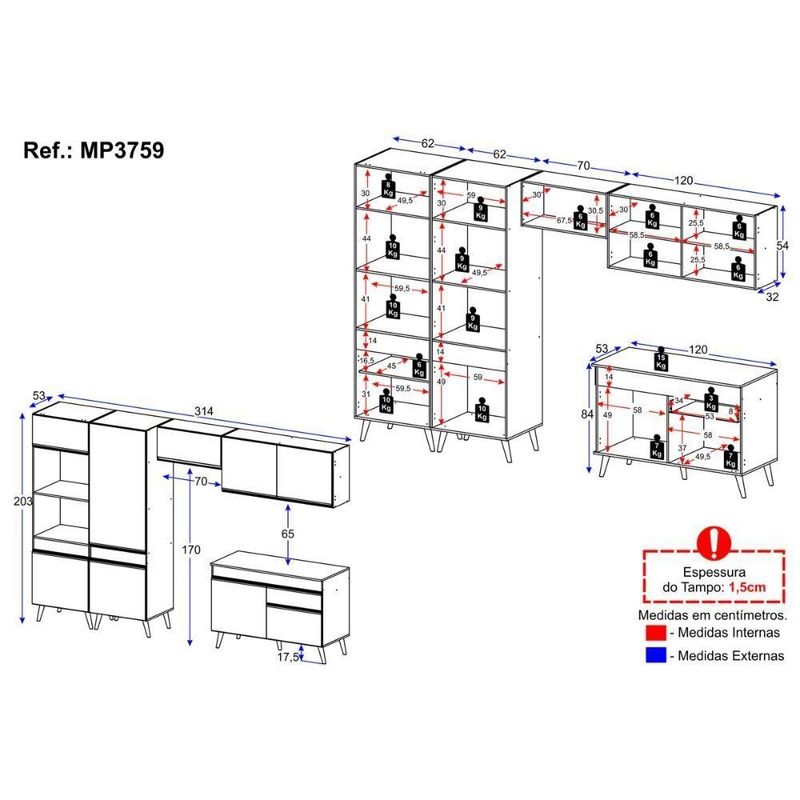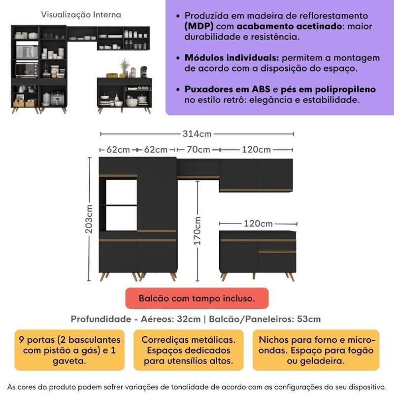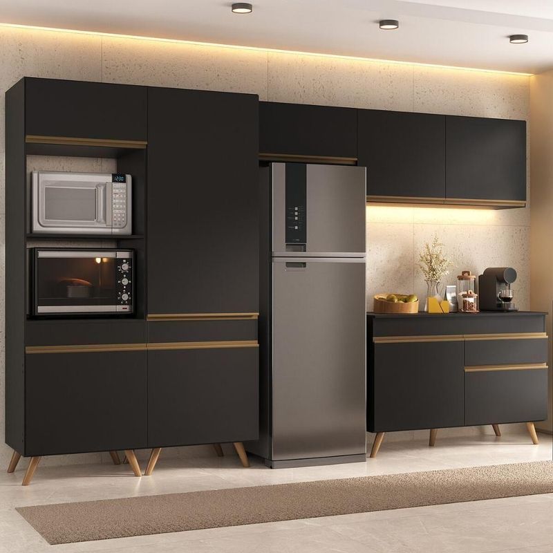Armário Cozinha Modulada Completa 314cm Com Balcão Veneza Multimóveis Mp3759 Preto/douradoTransforme sua rotina e o coração da casa com a Cozinha Modulada Completa 314cm com Balcão Veneza Multimóveis MP3759 — um conjunto pensado para quem valoriza beleza, praticidade e aquele prazer gostoso de ter tudo no lugar. Com design que remete a uma cozinha planejada, ela se adapta ao seu espaço e deixa o ambiente mais acolhedor, organizado e funcional todos os dias.Diferenciais:- 3 anos de garantia contra defeitos de fabricação e material.- Produzida em madeira de reflorestamento (MDP 12/15mm): garante resistência e consciência ambiental.- Acabamento acetinado (cerca de 20% de brilho): traz sofisticação e facilita a limpeza.- Composta por 5 módulos individuais: oferece liberdade para compor a cozinha do seu jeito.- Balcão com tampo de 15mm incluso: perfeito para servir de apoio no preparo das suas refeições (montagem somente conforme as imagens - não reversível).- Nichos para forno e micro-ondas (suportam até 10kg), trazendo praticidade à rotina.- 7 portas com dobradiças metálicas: amplo espaço interno para organizar itens de cozinha.- 2 portas basculantes com pistão a gás: conforto e segurança ao abrir e fechar.- 1 gaveta com corrediças metálicas: ideal para talheres e utensílios essenciais.- Espaço dedicado para fogão ou geladeira (não inclusos), otimizando o layout da cozinha.- Puxadores em ABS com design alongado: modernos e confortáveis ao toque.- Pés em polipropileno no estilo retrô: charme extra e estabilidade aos módulos.Conteúdo da Embalagem:1 (um) Armário Aéreo 120cm1 (um) Armário Aéreo 70cm1 (um) Balcão com Tampo 120cm1 (um) Armário para Forno e Micro-ondas 62cm1 (um) Paneleiro 62cmManual de MontagemKit FerragemDimensões do Produto Montado:Altura: 203cm | Largura: 314cm | Profundidade: 53cm (Balcão/Paneleiros) - 32cm (Aéreos)*Espaço para Fogão/Geladeira - Altura: 170cm | Largura: 70cm*Você pode consultar as medidas detalhadas na imagem técnica do produto.*As cores do produto podem sofrer variações de tonalidade de acordo com as configurações do seu dispositivo.*Aqui na Loja Multimóveis, você pode concluir sua compra facilmente com toda segurança. A entrega é garantida e você está em 1° lugar.Imagem meramente ilustrativa. Decoração e eletros não acompanham o produto.O produto será entregue desmontado e não disponibilizamos o serviço de montagem. Acabamento: Pintura UV | Tonalidade: Preto | Material: MDP | Referência do Modelo: MP3759 | Coleção: Veneza | Instruções de Cuidado: Limpar com pano seco para retirar o pó. Não utilizar produtos químicos ou abrasivos a limpeza. Não aplicar lustra móveis. | Sistema de Montagem: O produto acompanha manual de montagem juntamente com kit ferragem. O produto será entregue desmontado e não disponibilizamos o serviço de montagem. | Produto Composto por: 1 aéreo 120cm, 1 aéreo 70cm, 1 balcão com tampo 120cm, 1 armário para forno/micro-ondas 62cm, 1 paneleiro 62cm, manual de montagem e kit ferragem. | Altura Montado: 203 | Largura Montado: 314 | Profundidade Montado: 53 | Tamanho (L x A x P): 314 x 203 x 53 | Fabricante: Multimóveis | Requer Montagem: Sim | Quantidade de Portas: 9 | Quantidade de Gavetas: 1 | Quantidade de Prateleiras: 6 | Quantidade de Puxadores: 10 | Quantidade de Pés: 13 | Porta com Vidro: Não | Corrediça: Metálica | Material do Puxador: ABS | Material dos Pés: Polipropileno | Acompanha Pia Inox: Não | Balcão 120 cm compatível para uso de pia: Não | Tampo Incluso: Sim | Quantidade de Tampos: 1 | Material do Tampo: MDP | Espessura do Tampo: 1.5 | Com Prateleiras: Sim | Produto: Cozinha | Tipo: Modular | RBN: 17100674011 | Altura (cm): 203 cm | Largura (cm): 314 cm | Profundidade (cm): 53 cm | Acessórios incluídos: N/A | Altura do Produto com Embalagem: 40 cm | Ubicação do móvel: Não aplica | Largura do Produto com Embalagem: 66 cm | Comprimento do Produto com Embalagem: 189 cm | Peso do Produto com Embalagem: 141000 g | Tempo de Garantia: 3 meses | Destaque 1: Produzida em MDP: maior durabilidade e resistência. | Destaque 2: Tamanho do produto montado (L x A x P): 314 x 203 x 53 cm | Destaque 3: Módulos individuais: possibilitam a montagem conforme a disponibilidade do espaço. | Destaque 4: Nichos para colocação de forno e micro-ondas: otimização do espaço. | Destaque 5: Balcão com tampo de 15mm incluso. | Tipo de móveis de cozinha: Cozinha completa | Marca: Multimóveis | Materiais do corpo: MDP | Materiais das portas: MDP | Altura do armário: 203 cm | Largura do armário: 314 cm | Profundidade do armário: 32 cm | Altura do balcão: 84 cm | Largura do balcão: 120 cm | Profundidade do balcão: 53 cm | Modelo detalhado: N/A | Peso (kg): 141 kg | Estilo: Moderno | Capacidade máxima de peso: N/A | Com Pés ajustáveis: Não | Quantidade de caixas de embalagem: 04 | Peso do Produto: 141 | É personalizado: Não | Baterias são necessárias?: Não | Certificação de teste externa: Não aplicável | Is Fragile: Não | Peso do item: unit=kilograms;value=141 | Dimensões do item P x L x A: depth#value=53;depth#unit=centimeters;width#value=314;width#unit=centimeters;height#value=203;height#unit=centimeters | Quantidade de itens: 1 | Número da peça: MP3759.130 | Duração da Garantia: 3 Meses | Montagem: Necessita Montagem | Tipo de Garantia: Garantia do Fabricante | Inclui manual de montagem: Sim | Palavras-chave: armario de cozinha, cozinha completa, cozinha compacta, cozinha planejada, cozinha modulada, balcao de cozinha, balcao de pia, cozinha modular, balcao cozinha, armario cozinha | Peso do balcão (kg): N/A | Peso do armário (kg): N/A | Componentes incluídos: Kit de instalação | Tipo da embalagem do vendor: Sem embalagem adicional | Cor: Preto/Dourado