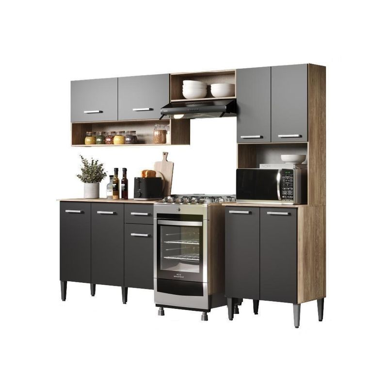 Armário Cozinha Compacta Arizona Essence Carvalho/preto Carraro A Cozinha Compacta Dalila da Carraro é o item perfeito para quem está procurando funcionalidade, organização e estilo para ambientes compactos. O produto é composto por uma torre quente de micro-ondas, um balcão de pia com gaveiteiro, um armário aéreo de 2 portas com espaço para porta temperos e um nicho.Especificações do Produto:Medidas totais: Largura: 225 cm | Altura: 182 cm | Profundidade: 44 cmMedidas da torre quente: Largura: 60 cm | Altura: 182 cm | Profundidade: 44 cmMedidas do balcão: Largura: 105 cm | Altura: 84,5 cm | Profundidade: 44 cmMedidas do aéreo: Largura: 105 cm | Altura: 55 cm | Profundidade: 27 cmMedidas do Nicho: Largura: 60 cm | Altura: 22 cm | Profundidade: 27 cmPeso total: 70,2 KgMatéria Prima: BPAcessórios: Pés com regulagem de alturaGarantia:Os produtos possuem garantia de 03 meses (se em condições normais), contra de fabricação, ou componentes utilizados.Esta garantia não cobre defeitos por uso inadequado ou abusivo, falta de cuidados e desbotamento natural dos revestimentos.Condições de perda da garantia:- Mau uso ou manuseio incorreto.- Desbotamento causado pela exposição direta da luz solar.- Danos causados por agentes da natureza, como inundações ou acidentes de qualquer espécie.- Uso indevido de produtos abrasivos para realizar a limpeza.- Decurso do prazo estabelecido.Recomendações para uma boa conservação:- Não utilizar na limpeza produtos abrasivos tais como: palha de aço, álcool, vinagre, limão, saponáceo, ou produtos corrosivos que possam riscar ou descolar a película protetora dos móveis.- Na limpeza de móveis em geral, napas e fórmicas, deve ser utilizado um pano levemente umedecido e sabão neutro.- Para a movimentação do móvel é importante que este seja levantado do chão, pois ao arrastá-lo pode causar estruturais.- Não deixe o móvel em exposição a intempéries.Informações importantes:- Trabalhamos para apresentar imagens fiéis ao produto real. Porém, as cores podem sofrer variações de acordo com o monitor, iluminação do ambiente em que se encontram e até por sua percepção visual comparado ao ambiente residencial.- Desta forma, as imagens são meramente ilustrativas.- Todos os objetos decorativos não acompanham o produto.- O produto é enviado desmontado.- O produto acompanha manual com instruções para a montagem.- A empresa Móveis Carraro não realiza o serviço de montagem.PERGUNTAS FREQUENTES- Existem outras cores disponíveis?Sim, este produto possui outras cores disponíveis em outros anúncios.- Vocês entregam para todas as regiões do ? De que forma é feita a ?Sim, entregamos para todas as regiões do . E a é realizada por transportadoras parceiras.- Este produto é ou ?Todos os nossos produtos são novos. E acompanham e certificado de garantia.- Recebo o produto montado?Não, este produto é enviado desmontado. Junto com ele é enviado manual com instruções para a montagem.- Vocês realizam a montagem do produto?Não possuímos o serviço de montagem. Cor: Carvalho/Preto | Material: MDP | Cor Via : Preto | Estado de Origem: RS | Família da Cor: Preto | Peso: 68.199999999999989 | Altura do Produto: 182,5 | Largura: 289 | Profundidade: 44 | Peso do Produto Com Embalagem: | Altura do Produto Com Embalagem: | Largura do Produto Com Embalagem: | Profundidade do Produto Com Embalagem: | Produto precisa de Montagem?: Não | Nome: Armário Cozinha Compacta Arizona Essence Carvalho/Preto Carraro | Instruções/Cuidados: Nenhuma Informação | Conteúdo da Embalagem: Armário Cozinha Compacta Arizona Essence Carvalho/Preto Carraro | Nome do Simples no Fornecedor: Armário Cozinha Compacta Arizona Essence Carvalho/Preto Carraro | PrazoExp: 3 | Tipo de móveis de cozinha: Armário/Balcão