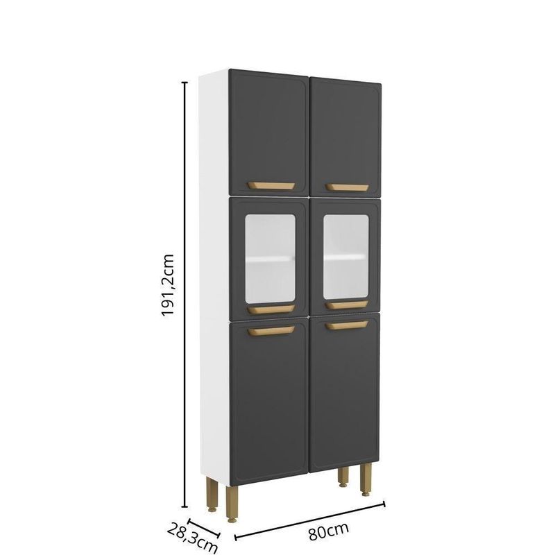Armário De Aço 6 Portas 2 Vidros Bella Bertolini Grafite BrancoA linha Bella foi feita para relembrar, imagine revisitar o passado através dos móveis da sua cozinha. São módulos no estilo vintage, que trazem praticidade, conforto e estética para o ambiente. O armário aéreo possui estrutura 100% em aço com pintura eletrostática. A mesma pintura que é utilizada em automóveis e alguns eletrodomésticos o que garante uma excelente durabilidade por proteger contra mofo, umidade e ferrugem. Esta pintura confere maior resistência a riscos e garantem maior higiene por facilitar a limpeza.Características:Marca: Bertolini MóveisLinha: BellaCondição do Item: Material: 100% AçoTipo do Móvel: ArmárioAcabamento: Pintura eletrostáticaPuxadores: Ergonômicos com proteção UVQuantidade de Portas: 6Quantidade de Portas com Vidro: 2Tipo do Vidro: TemperadoTipo da Dobradiça da Porta: MetálicaQuantidade de Volumes: 1Dimensões da Embalagem: 10,5 x 83,5 x 111,5 cmPeso da Embalagem: 28,48 kgDimensões do produto montado:Altura: 191,2 cmLargura: 80 cmProfundidade: 28,3 cmPeso: 27,08 kgOs produtos Bertolini Móveis possuem 12 (doze) meses de garantia contra de fabricação.