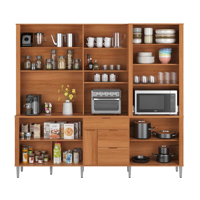 Armário de Cozinha Astra 10 Portas 4 Gavetas Jequitibá - Lukaliam O Armário de Cozinha Astra com 10 Portas e 4 Gavetas é a solução perfeita para organização e praticidade. Com amplo espaço interno, permite armazenar utensílios, mantimentos e louças com facilidade. Seu design moderno se adapta a diversos estilos de decoração, enquanto a estrutura resistente garante durabilidade. Ideal para manter a cozinha sempre organizada e funcional, unindo beleza e eficiência. Especificações Técnicas: Modelo: 904334 Cor: Jequitibá Conteúdo da Embalagem: 1 Armário Cozinha, Kit Ferragem e Manual de Montagem Não nos responsabilizamos pela montagem e instalação dos produtos. Garantia de fábrica: 90 dias contra defeito de fabricação. Tamanho montado: 220cm x 240cm x 41cm - Altura x Largura x Profundidade Peso suportado 80kg distribuídos; Produto MDP/MDF; Pintura Amadeirado; Gavetas com corrediças telescópicas; Gaveta com organizador de talheres em MDP; Porta tempero com corrediças telescópicas; Portas basculantes com pistão a gás; Tampo intermediário em MDP de 25mm; RECOMENDAÇÕES GERAIS: Seguir a ordem do manual de montagem; Evitar batidas e contato com objetos cortantes; Não deixe o móvel em locais muito úmidos; Limpar com pano levemente umedecido com água, seguido de pano seco; Não utilizar produtos químicos ou abrasivos; Evite incidência direta de luz solar; Informações importantes: • Fotos meramente ilustrativa. Os objetos que ambientam as fotos não acompanham o produto. • As cores do produto podem variar de acordo com o monitor, a iluminação do ambiente ou sua percepção visual. • A compra do produto não acompanha montagem/desmontagem. • Montagens, desmontagens e instalações são responsabilidades do cliente. Estes serviços não estão inclusos no valor do produto. Para evitar imprevistos na sua entrega, confira as dimensões do produto no momento da compra e certifique-se de que ele passará por elevadores, portas, escadas e corredores, já que nossa entrega não inclui a subida de lances de escada ou o içamento de produtos. • Verifique a complexidade antes de decidir montar sozinho, orientamos que este produto seja montado por um profissional de sua confiança, após a sua entrega. • Todas as instruções, manuais e peças necessárias para a montagem são fornecidos junto com o produto, não nos responsabilizamos pela instalação/montagem. • Fornecemos somente assistências, por defeitos de fábrica.