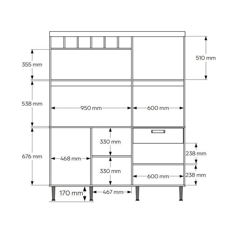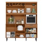 Armário de Cozinha Dakota 6 Portas 1 Gaveta e Adega para 6 Garrafas Jequitibá - Lukaliam O Armário de Cozinha Dakota com 6 Portas, 1 Gaveta e Adega para 6 Garrafas é a escolha ideal para quem busca organização e elegância. Com amplo espaço para armazenar utensílios e mantimentos, sua adega integrada adiciona um toque sofisticado ao ambiente. O design moderno e a estrutura resistente garantem durabilidade e funcionalidade, tornando sua cozinha mais prática e estilosa. Especificações Técnicas: Modelo: 904291 Cor: Jequitibá Conteúdo da Embalagem: 1 Armário Cozinha, Kit Ferragem e Manual de Montagem Não nos responsabilizamos pela montagem e instalação dos produtos. Garantia de fábrica: 90 dias contra defeito de fabricação. Tamanho montado: 200cm x 160cm x 41cm - Altura x Largura x Profundidade Peso suportado 50kg distribuídos; Produto MDP; Pintura Toque BP/Brilhante; Gaveta com corrediças telescópicas; Gaveta com organizador de talheres em MDP; Porta basculante com pistão a gás; Espaço para 6 garrafas; RECOMENDAÇÕES GERAIS: Seguir a ordem do manual de montagem; Evitar batidas e contato com objetos cortantes; Não deixe o móvel em locais muito úmidos; Limpar com pano levemente umedecido com água, seguido de pano seco; Não utilizar produtos químicos ou abrasivos; Evite incidência direta de luz solar; Informações importantes: • Fotos meramente ilustrativa. Os objetos que ambientam as fotos não acompanham o produto. • As cores do produto podem variar de acordo com o monitor, a iluminação do ambiente ou sua percepção visual. • A compra do produto não acompanha montagem/desmontagem. • Montagens, desmontagens e instalações são responsabilidades do cliente. Estes serviços não estão inclusos no valor do produto. Para evitar imprevistos na sua entrega, confira as dimensões do produto no momento da compra e certifique-se de que ele passará por elevadores, portas, escadas e corredores, já que nossa entrega não inclui a subida de lances de escada ou o içamento de produtos. • Verifique a complexidade antes de decidir montar sozinho, orientamos que este produto seja montado por um profissional de sua confiança, após a sua entrega. • Todas as instruções, manuais e peças necessárias para a montagem são fornecidos junto com o produto, não nos responsabilizamos pela instalação/montagem. • Fornecemos somente assistências, por defeitos de fábrica.