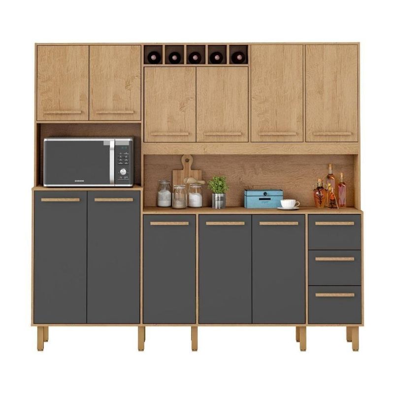 Armário De Cozinha Amanda 11 Portas 2,12mt Am Am GrafiteArmário de Cozinha Amanda 11 Portas 2,12MT Am Am GrafiteBem-vindo à Milani Movelaria – mais de 10 anos ajudando famílias a transformar suas casas com móveis de qualidade.O Armário Amanda 2,12 MT 11 Portas é a solução ideal para quem precisa de espaço, organização e elegância em um único móvel.Imagine sua cozinha com tudo no lugar: louças, panelas e mantimentos bem organizados, sem bagunça nas bancadas. Esse é o resultado que o Armário Amanda entrega. Além da capacidade interna generosa, o design moderno faz dele uma peça que valoriza qualquer ambiente.Vantagens que você vai sentir no dia a dia:Organização completa: 11 portas que permitem separar cada tipo de item.Estilo e sofisticação: acabamento moderno que deixa sua cozinha mais bonita.Praticidade e resistência: pensado para facilitar sua rotina e durar por muitos anos.Nossos clientes contam que, após a montagem, percebem como a cozinha fica mais funcional e com muito mais espaço livre.Especificações TécnicasModelo: Armário Amanda 2,12 MT 11 PortasEstrutura: MDP de 15mmMedidas: Largura: 2,12 MT | Altura: 2,00 MT |Profundidade: Superior: 30 cm | Inferior: 45 cm |Portas: 11 unidades com puxadores em MDFGavetas: 3 amplas com corrediça TelescópicaPés com regulagem de alturaAcabamento: Pintura UV Amêndoa ( Fosco ) Grafite ( Fosco ) .Garantia: 3 meses contra defeitos de fabricaçãoConteúdo da Embalagem1 Armário Amanda 2,12 MT 11 PortasKit completo de ferragensManual para montagemRecomendamos que a limpeza seja efetuada com pano seco e ou levemente umedecido. Não aplicar produtos químicos.***Este produto não acompanha Tampo ou Cuba para Pia.* Foto Ilustrativa.Não acompanhando objetos de enfeites e eletros;Ao receber o produto verifique as condições da embalagem, em caso de avaria entre em contato conosco para orientações;Confira as dimensões do produto e certifique-se de que passarão normalmente por supostos elevadores, portas, escadas ou corredores de sua moradia;Entregamos os produtos na área urbana até a frente de sua moradia, ou seja, até sua porta se for casa ou portaria se for apartamento.A Loja não disponibiliza o serviço de montagem, a montagem é de total responsabilidade do comprador.Com o Armário Amanda, sua cozinha ganha mais espaço, beleza e praticidade.Milani Movelaria – móveis que unem funcionalidade e design para sua casa. Requer montagem: Sim | Peso do Produto: 96 | Cor: Am/Am/Grafite | Tonalidade: Marrom Claro | Altura: 200 | Largura: 212 | Acompanha Pia: Não | Acabamento: PiNTURA UV | Marca: Milani Movelaria | Fabricante: Milani Movelaria | Tipo de móveis de cozinha: Armario | Profundidade: 45 | Materiais do corpo: MDP 15MM | Modelo: Armário de Cozinha Amanda 11 Portas 2,12MT Am Am Grafite | Inclui manual de montagem: Sim | Quantidade de caixas de embalagem: 3