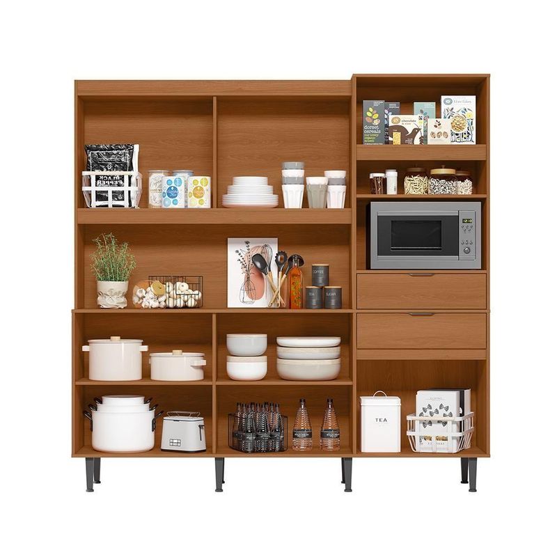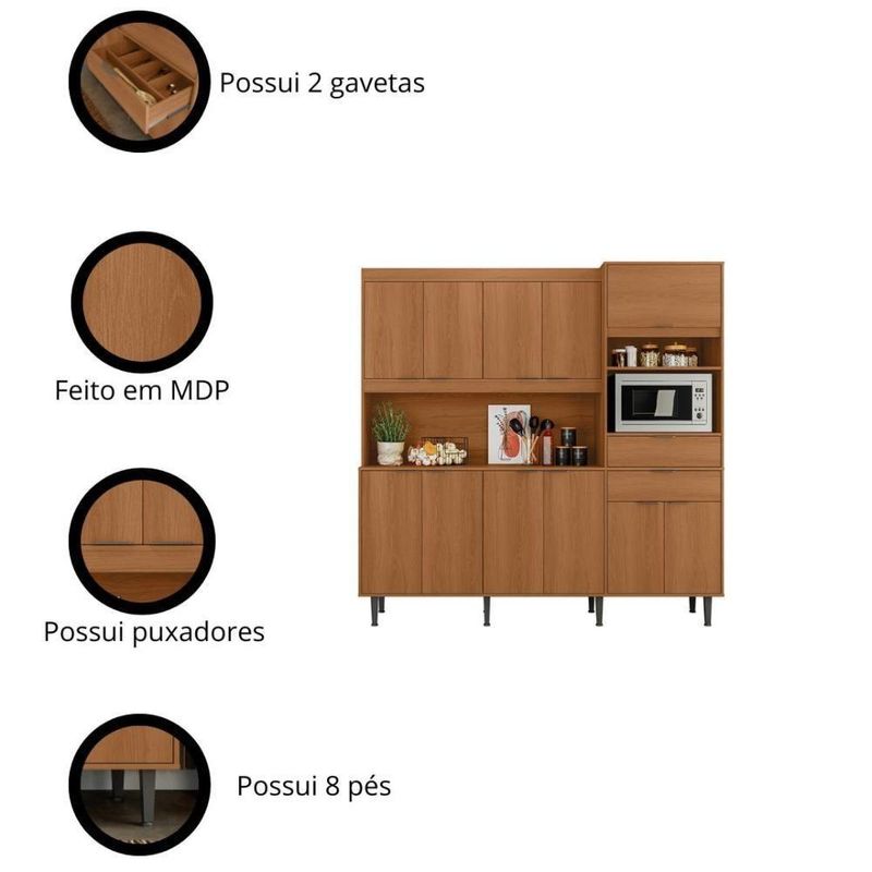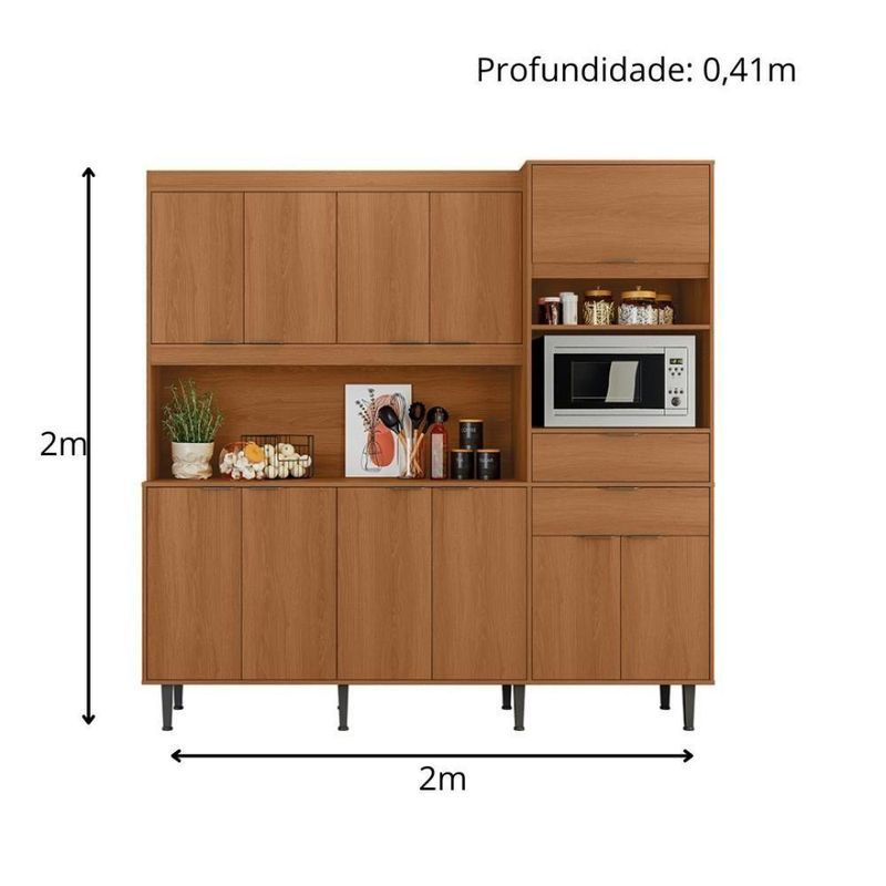 Armário De Cozinha Bahamas Compacta - 11 Portas 2 Gavetas Jequitiba - Lukaliam Móveis JequitibaArmário de Cozinha Bahamas Compacta - Praticidade e Estilo para Seu LarTransforme sua cozinha em um espaço moderno e funcional com o Armário de Cozinha Bahamas Compacta da Lukaliam Móveis. Com 11 portas e 2 gavetas, este armário é a solução perfeita para quem busca organização e sofisticação no dia a dia.Espaço de Armazenamento InteligenteUm dos grandes diferenciais do Armário Bahamas é o seu amplo espaço de armazenamento. Com diversas portas, prateleiras e nichos, você poderá organizar seus utensílios e louças de maneira prática e acessível. Além disso, o armário conta com um espaço dedicado para micro-ondas, otimizando ainda mais a funcionalidade do seu ambiente.Atributos do ProdutoMarca: Lukaliam MóveisModelo: Bahamas 2.0Estrutura: 100% MDP 15mm, garantindo durabilidade e resistência.Gavetas: 2 gavetas com corrediças telescópicas, facilitando o acesso aos seus 10 portas, incluindo 1 porta basculante com pistão a gás para maior praticidade.Puxadores: Em ABS, oferecendo um toque moderno e elegante.Suporte de Peso: Suporta até 50kg, ideal para armazenar itens pesados.Pintura: Brilhante, que confere um acabamento sofisticado e fácil de ões: Altura 200cm, Largura 200cm, Profundidade 41 cm, perfeito para espaços de Montagem: Acompanha um manual detalhado para facilitar a montagem do produto.Qualidade e Estilo em um Só ProdutoO Armário de Cozinha Bahamas não é apenas funcional, mas também traz um toque de elegância para o seu lar. Seus materiais de alta qualidade e design moderno fazem dele uma peça chave para qualquer cozinha, deixando o ambiente mais sofisticado e acolhedor.Observações ImportantesAs imagens são meramente ilustrativas e os acessórios de decoração não estão inclusos. A não oferece de montagem, mas todos os móveis vêm com um manual de montagem passo a passo para facilitar o processo. Cor: Jequitiba/Areia | Marca: Lukaliam Móveis | Modelo: Bahamas | Altura: 200 cm | Largura: 200 cm | Profundidade: 41 cm | Requer Montagem: Sim | Quantidade de caixas de embalagem: | Cor: Jequitiba