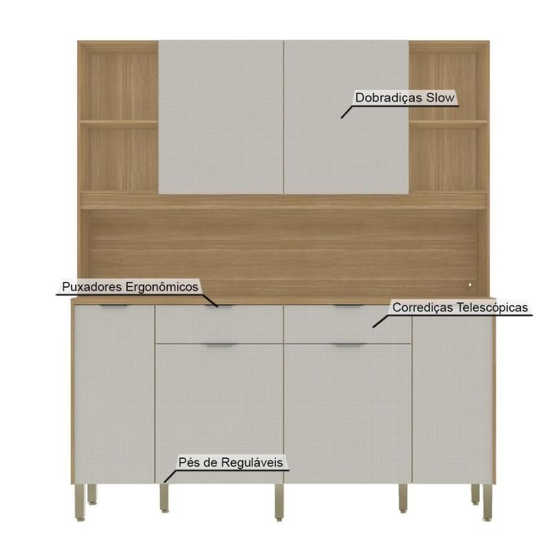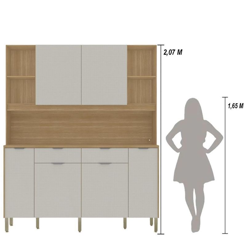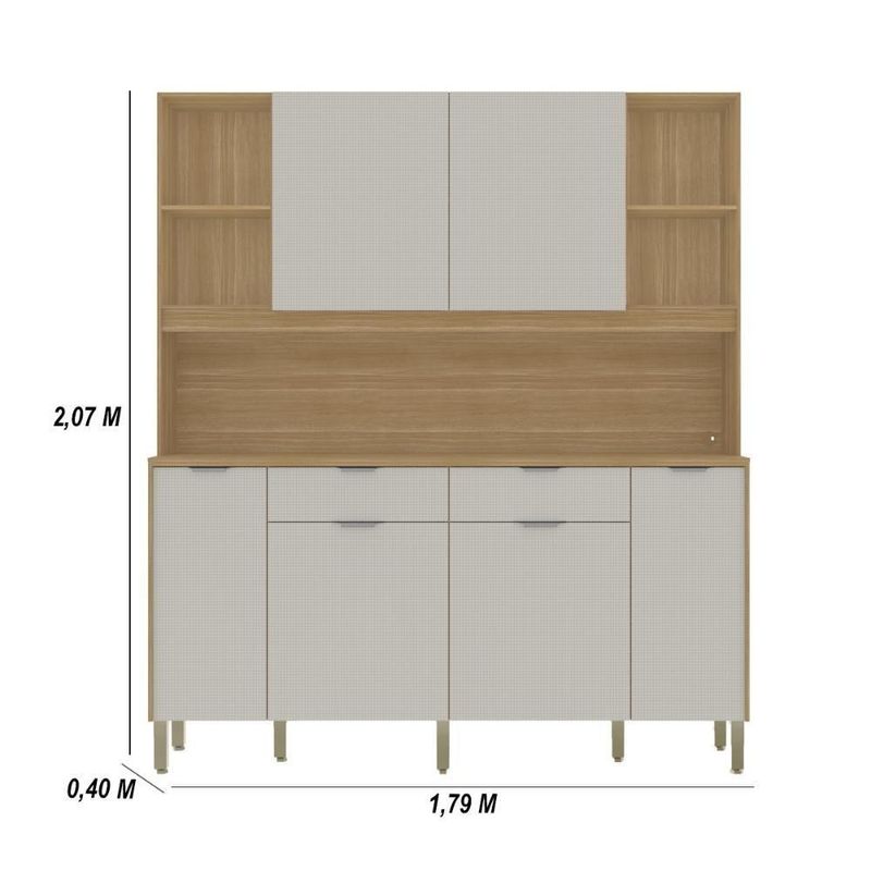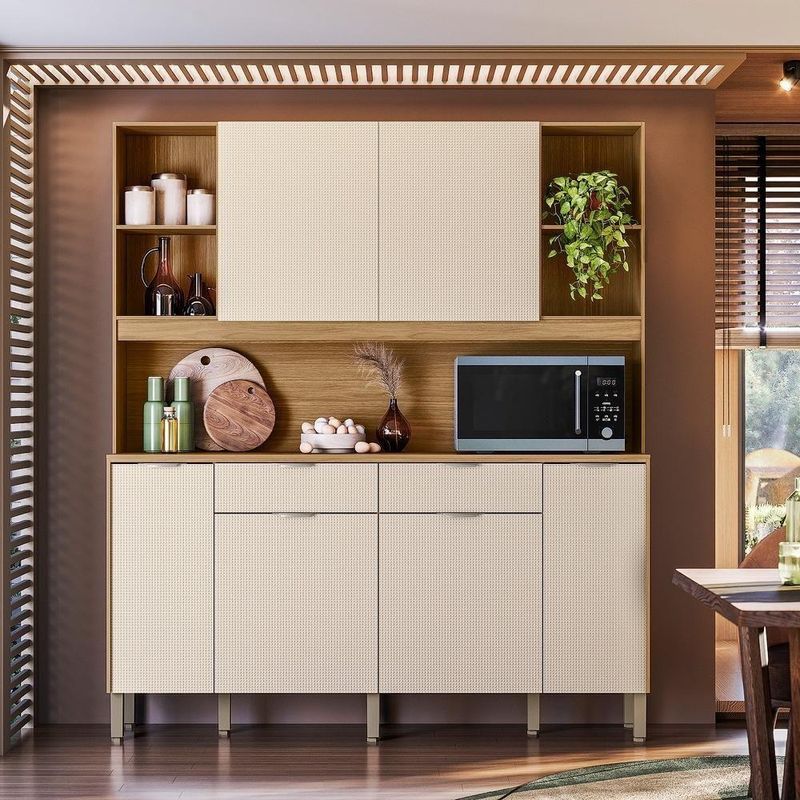 Armário De Cozinha Compacto Botanika 6 Portas 2 Gavetas Nicho P/micro-ondas 1,79m - Freijó/softArmario de Cozinha Compacto 6 Portas BotanikaDeixe sua cozinha mais organizada e com visual moderno com um móvel completo, pensado para facilitar a rotina. Produzido em MDP de 12 e 15 mm, ele combina boa resistência com um acabamento caprichado para o uso diário.O destaque vai para o excelente espaço interno: são 6 portas e 2 gavetas amplas, além de prateleiras internas que ajudam a distribuir utensílios, mantimentos e louças. Os nichos para objetos de decoração valorizam o ambiente e permitem compor a cozinha com itens decorativos ou de uso rápido.O móvel também conta com espaço para micro-ondas e passa-fio, mantendo os cabos organizados e deixando o conjunto mais funcional. Para mais conforto no manuseio, possui dobradiças com amortecedor (fechamento suave) e corrediças telescópicas 100% metálicas, garantindo abertura estável e maior durabilidade.Os puxadores ergonômicos em alumínio reforçam a qualidade e facilitam o uso no dia a dia.Destaques:- Estrutura em MDP 12 e 15 mm- 6 portas + 2 gavetas amplas- Nichos decorativos + prateleiras internas- Espaço para micro-ondas + passa-fio- Dobradiças com amortecedor- Corrediças telescópicas 100% metálicas- Puxadores ergonômicos em alumínio- Pés reguláveis em plástico resistente- Portas superiores passantes + acabamento embutido- Pintura UV (secagem em luzes UV)Dimensões- Altura: 2,07 Metros- Largura: 1,79 Metros- Profundidade Inferior: 0,40 Metros- Produndidade Superior: 0,28 MetrosMaterial: MDP | Cor: Freijó/Soft | Cômodo Indicado: Cozinha | Dimensões do Produto (A X L X P): 207 x 179 x 40 | Possui Prateleira: Sim | Possui Gaveta: 2 Gavetas | Tipo da Corrediça da Gaveta: Telescópicas | Possui portas: Sim | Quantidade de portas: 6 Portas | Tipo de Porta: Bater | Possui porta Basculante: Não | Possui Pistão á Gás: não | Possui Nichos: Sim | Possui pés: Sim | Possui Vidro: Não | Quantidade de Vidros: 0 | Peso do Produto (Kg): 78,46 KG | Altura do Produto (cm): 207 | Largura do Produto (cm): 179 | Comprimento do Produto (cm): 40 | Nome do Simples no Fornecedor: Cozinha Botanika | Garantia do Fabricante: 3 Meses | Instruções/Cuidados: Evite contato com líquidos. Nada de lavar os móveis. Móveis não gostam de umidade. Não deixe o móvel exposto ao sol. Os acessórios também precisam de limpeza. | Necessita Montagem: Sim, a montagem é simples mas sugerimos a contratação de algum profissional experiente de sua preferência | Tamanho das Chapas: 12 e 15 mm | Material da Estrutura: MDP | Necessita Fixação na Parede: Não | Conteúdo Embalagem: Cozinha Botanika | Origem: Nacional | Estado de Origem: Paraná | Quantidade de Volumes: 2 | Peso Bruto (volume 01): 37,3 | Comprimento x Largura x Altura (volume 01): 184x54x6 | Peso Bruto (volume 02): 41,16 | Comprimento x Largura x Altura (volume 02): 87x78x11 Cor: Freijó/Soft