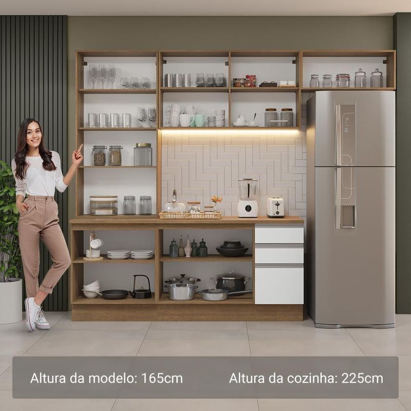Armário De Cozinha Completa 270cm Rustic/branco Glamy Madesa 16 Rustic/brancoA Cozinha Completa Glamy da Madesa vai trazer modernidade e elegância para sua casa.Um dos grandes diferenciais desta versão é a cristaleira, que deixa o ambiente muito mais sofisticado. Com duas portas de vidro, ela oferece um espaço amplo e organizado, ideal para exibir louças, copos e objetos decorativos.O móvel também se destaca pelos puxadores em alumínio e gavetas com corrediças telescópicas de abertura total. Possui ainda portas com amortecimento para fechamento suave e pés reguláveis em PVC.Composta por módulos avulsos, esta cozinha pode ser organizada conforme a necessidade do seu ambiente. Além disso, será possível complementar futuramente a sua cozinha com outros módulos da linha Glamy.E para completar, o acabamento de alta resistência combina os tons amadeirado rustic e branco.Medidas totais:- 225 cm de altura- 270 cm de largura- 52 cm de profundidade nos balcões e 31 cm nos aéreosO que você recebe:- Uma Cristaleira de 70 cm com duas (2) portas- Um Balcão de 70 cm com duas (2) portas e tampo- Um Aéreo de 120 cm com duas (2) portas- Um Balcão de 120 cm com duas (2) portas, três (3) gavetas e tampo- Um Aéreo de 80 cm com uma porta basculanteCódigo do produto: GRGL2700166EÉ bom saber:- A cristaleira não acompanha pés nem kit para suspender na parede. Deve ser instalada sobre o balcão e fixada na parede.- As imagens são meramente ilustrativas, os eletros e a decoração não acompanham o produto- A Madesa não oferece de montagemA Madesa se dedica à sustentabilidade com várias iniciativas: temos uma usina própria para gerar energia que abastece uma de nossas fábricas. Selecionamos nossos fornecedores, priorizando aqueles que possuem um compromisso com a sustentabilidade e proteção do meio ambiente. Todo o plástico utilizado no setor produtivo é proveniente de reciclagem e as suas sobras são encaminhadas ao fornecedor que os recicla. Também investimos no desenvolvimento contínuo de nossos colaboradores e em ações educacionais que beneficiem a comunidade.COR: Branco | Garantia: 3 meses contra de fabricação | Dimensões - Altura: 225 cm | Dimensões - Largura: 270 cm | Dimensões - Profundidade: 52 cm | Peso aproximado: 147 kg | Produto: Cozinha Completa | Marca: Madesa | Material: MDP | RBN: Casa/Móveis/Móveis de Cozinha/Móveis de Cozinha Completa | Conteúdo da embalagem: Uma Cozinha Completa | Instruções/Cuidados: Utilize um pano limpo, levemente umedecido e seque em seguida a superfície. Não usar produtos químicos ou abrasivos para a limpeza. Recomendamos polir seu móvel com lustra-móveis duas a três vezes por ano. | Altura do Produto com Embalagem (cm): 81,5 | Largura Produto Com Embalagem (cm): 60,2 | Comprimento Produto Com Embalagem (cm): 158,2 | Peso Produto Com Embalagem (Kg): 147,44 | Produto precisa de Montagem?: Sim | Descrição do Tamanho: 225 cm x 270 cm x 52 cm | Estado de Origem: RS | Material para Filtro: MDP | Cômodo Indicado: Cozinhas | Nome do Simples no Fornecedor: Armário de Cozinha Completa 270cm Rustic/Branco Glamy Madesa 16 | do Fabricante: | Fabricante: Madesa | Quantidade de caixas de embalagem: 15 | Quantidade de portas: 9 | Quantidade de gavetas: 3 | Tipo de móveis de cozinha: Cozinha Completa | Inclui tampo: Sim | Tipo de Pé: Regulável | Materiais do corpo: MDP | Modelo: GRGL2700166E | É Frágil: Não | Quantidade de Itens: 1 | da peça: GRGL2700166E | Precisa de baterias ou pilhas: Não | Certificação de teste externa: Sim | Inclui manual de montagem: Sim | Componentes incluídos: Portas | Cor: Rustic/Branco
