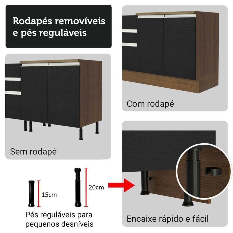 Armário De Cozinha Completa 270cm Rustic/preto Glamy Madesa 16 Rustic/pretoA Cozinha Completa Glamy da Madesa vai trazer modernidade e elegância para sua casa.Um dos grandes diferenciais desta versão é a cristaleira, que deixa o ambiente muito mais sofisticado. Com duas portas de vidro, ela oferece um espaço amplo e organizado, ideal para exibir louças, copos e objetos decorativos.O móvel também se destaca pelos puxadores em alumínio e gavetas com corrediças telescópicas de abertura total. Possui ainda portas com amortecimento para fechamento suave e pés reguláveis em PVC.Composta por módulos avulsos, esta cozinha pode ser organizada conforme a necessidade do seu ambiente. Além disso, será possível complementar futuramente a sua cozinha com outros módulos da linha Glamy.E para completar, o acabamento de alta resistência combina os tons amadeirado rustic e preto.Medidas totais:- 225 cm de altura- 270 cm de largura- 52 cm de profundidade nos balcões e 31 cm nos aéreosO que você recebe:- Uma Cristaleira de 70 cm com duas (2) portas- Um Balcão de 70 cm com duas (2) portas e tampo- Um Aéreo de 120 cm com duas (2) portas- Um Balcão de 120 cm com duas (2) portas, três (3) gavetas e tampo- Um Aéreo de 80 cm com uma porta basculanteCódigo do produto: GRGL2700167KÉ bom saber:- A cristaleira não acompanha pés nem kit para suspender na parede. Deve ser instalada sobre o balcão e fixada na parede.- As imagens são meramente ilustrativas, os eletros e a decoração não acompanham o produto- A Madesa não oferece de montagemA Madesa se dedica à sustentabilidade com várias iniciativas: temos uma usina própria para gerar energia que abastece uma de nossas fábricas. Selecionamos nossos fornecedores, priorizando aqueles que possuem um compromisso com a sustentabilidade e proteção do meio ambiente. Todo o plástico utilizado no setor produtivo é proveniente de reciclagem e as suas sobras são encaminhadas ao fornecedor que os recicla. Também investimos no desenvolvimento contínuo de nossos colaboradores e em ações educacionais que beneficiem a comunidade.COR: Preto | Garantia: 3 meses contra de fabricação | Dimensões - Altura: 225 cm | Dimensões - Largura: 270 cm | Dimensões - Profundidade: 52 cm | Peso aproximado: 147 kg | Produto: Cozinha Completa | Marca: Madesa | Material: MDP | RBN: Casa/Móveis/Móveis de Cozinha/Móveis de Cozinha Completa | Conteúdo da embalagem: Uma Cozinha Completa | Instruções/Cuidados: Utilize um pano limpo, levemente umedecido e seque em seguida a superfície. Não usar produtos químicos ou abrasivos para a limpeza. Recomendamos polir seu móvel com lustra-móveis duas a três vezes por ano. | Altura do Produto com Embalagem (cm): 81,5 | Largura Produto Com Embalagem (cm): 60,2 | Comprimento Produto Com Embalagem (cm): 158,2 | Peso Produto Com Embalagem (Kg): 147,44 | Produto precisa de Montagem?: Sim | Descrição do Tamanho: 225 cm x 270 cm x 52 cm | Estado de Origem: RS | Material para Filtro: MDP | Cômodo Indicado: Cozinhas | Nome do Simples no Fornecedor: Armário de Cozinha Completa 270cm Rustic/Preto Glamy Madesa 16 | do Fabricante: | Fabricante: Madesa | Quantidade de caixas de embalagem: 15 | Quantidade de portas: 9 | Quantidade de gavetas: 3 | Tipo de móveis de cozinha: Cozinha Completa | Inclui tampo: Sim | Tipo de Pé: Regulável | Materiais do corpo: MDP | Modelo: GRGL2700167K | É Frágil: Não | Quantidade de Itens: 1 | da peça: GRGL2700167K | Precisa de baterias ou pilhas: Não | Certificação de teste externa: Sim | Inclui manual de montagem: Sim | Componentes incluídos: Portas | Cor: Rustic/Preto