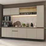 Armário De Cozinha Completa 280 Cm Suspensa Crema Nice Madesa 05 CremaA Cozinha Completa é a solução perfeita para quem busca praticidade e organização. O armário com vidro reflex traz um toque de elegância ao ambiente.A linha Nice chega em uma nova versão no tom crema, uma tonalidade suave que transmite aconchego e leveza. Outro diferencial está nos puxadores em bronze metalizado, que acrescentam um toque contemporâneo. Com a opção de ser instalada de forma suspensa, essa cozinha oferece um visual ainda mais moderno.O balcão conta com dobradiças metálicas nas portas e puxadores em perfil de alumínio, discretos e resistentes. O tampo é removível, o que permite a instalação de cuba ou pedra. O acabamento é de alta resistência, garantindo durabilidade.Medidas totais:- 211 cm de altura- 280 cm de largura- 52 cm de profundidade nos balcões e paneleiro, 31 cm nos aéreos e 45 cm no nicho para micro-ondasO que você recebe:- Um Armário Aéreo de 120 cm com duas portas- Um Nicho aéreo de 60 cm com espaço para forno- Um Armário Aéreo de 120 cm com duas portas em vidro reflex- Um Balcão de 120 cm com três portas e uma gaveta- Um Armário Aéreo de 120 cm com duas portas- Um Paneleiro de 40 cm com duas portasCódigo do produto: GRNC2800057PÉ importante saber:- Material: MDP- Imagens meramente ilustrativas, a decoração não acompanha o produto.- A Madesa não oferece de montagem.- O produto segue com manual e todas as ferragens necessárias.- A cozinha não acompanha pés, deve ser instalada de forma suspensa, com fixação na parede.A Madesa se dedica à sustentabilidade com várias iniciativas: temos uma usina própria que gera energia para uma das fábricas. Priorizamos fornecedores responsáveis com o meio ambiente. Todo o plástico utilizado na produção é reciclado, e as sobras também são reaproveitadas. Investimos no desenvolvimento de nossos colaboradores e em ações que beneficiem a comunidade. Cor: Bege | Garantia: 3 meses contra de fabricação | Dimensões - Altura: 211 cm | Dimensões - Largura: 280 cm | Dimensões - Profundidade: 52 cm | Produto: Cozinha Completa | Marca: Madesa | Peso aproximado: 148,9 kg | Material: MDP | Estado de Origem: RS | Conteúdo da embalagem: Uma Cozinha Completa | Material para Filtro: MDP | Instruções/Cuidados: Utilize um pano limpo, levemente umedecido e seque em seguida a superfície. Não usar produtos químicos ou abrasivos para a limpeza. Recomendamos polir seu móvel com lustra-móveis duas a três vezes por ano. | Produto precisa de Montagem?: Sim | Inclui tampo: Sim | Peso Produto Com Embalagem (Kg): | Altura do Produto com Embalagem (cm): 55,9 | Largura Produto Com Embalagem (cm): 66,1 | Comprimento Produto Com Embalagem (cm): 199,8 | Descrição do Tamanho: 211 cm x 280 cm x 52 cm | Nome do Simples no Fornecedor: Armário de Cozinha Completa 280 cm Suspensa Crema Nice Madesa 05 | Fabricante: Madesa | RBN: Casa/Móveis/Móveis para Escritório em Casa | Quantidade de Gavetas: 1 | Quantidade de portas: 11 | Tipo de móveis de cozinha: Cozinha Completa | Materiais do corpo: MDP | Quantidade de caixas de embalagem: 7 | Bullet Point 1: Dimensões: 211 cm altura x 280 cm largura x 52 cm profundidade | Bullet Point 2: A linha Nice chega em uma nova versão no tom Crema, uma tonalidade suave que transmite aconchego e leveza | Bullet Point 3: Os puxadores em bronze metalizado acrescentam um toque contemporâneo | Bullet Point 4: Possui acabamento de alta resistência, conservando a beleza do móvel por muito mais tempo | É Frágil: Não | Quantidade de Itens: 1 | Certificação de teste externa: Sim | Modelo: GRNC2800057P | Componentes incluídos: Portas | Precisa de baterias ou pilhas: Não | da peça (part_number): GRNC2800057P | Peso do item (item_weight): ;unit=kilograms | Dimensões do item P x L x A (item_depth_width_height): depth#value=52;depth#unit=centimeters;height#value=211;height#unit=centimeters;width#value=280;width#unit=centimeters | Requer montagem (REQUIRES_ASSEMBLY): Sim | Inclui manual de montagem (INCLUDES_ASSEMBLY_MANUAL): Sim | Inclui manual de montagem: Sim | Cor: Crema
