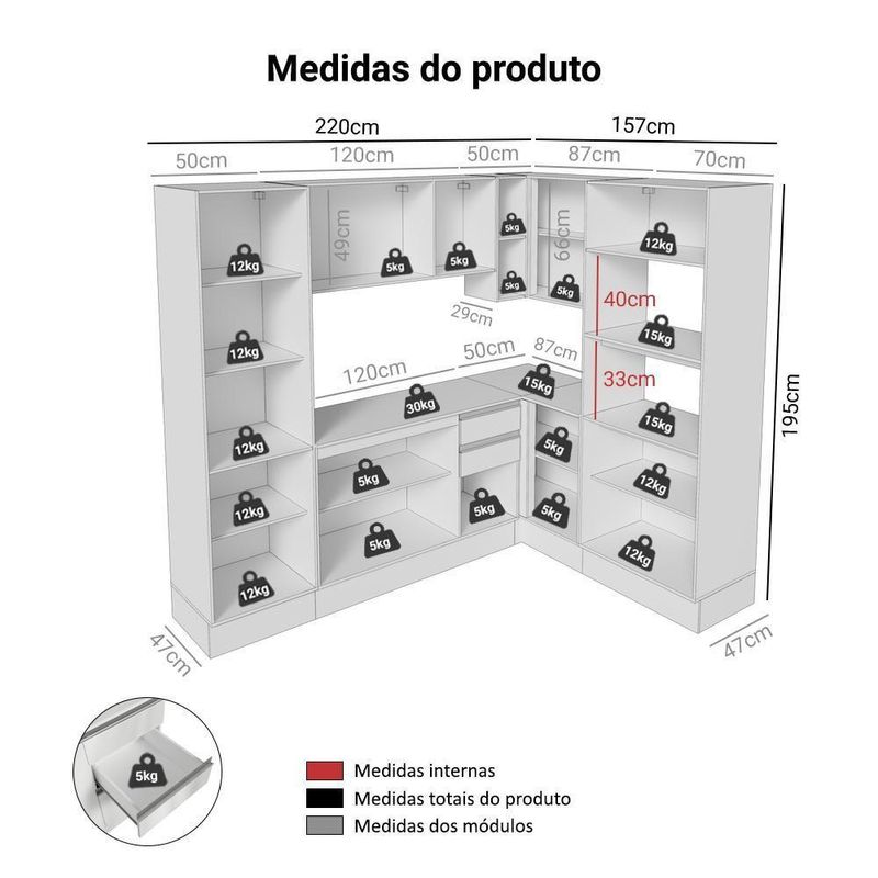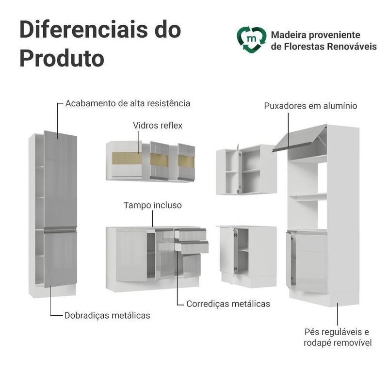 Armário De Cozinha Completa De Canto 100% Mdf 377cm Smart Branco Brilhante Madesa 01 BrancoA Cozinha de canto Smart foi desenvolvida para quem busca um visual elegante e funcional.Produzida em 100% MDF, a linha Smart se destaca pela qualidade e resistência. Possui dobradiças e corrediças metálicas, que garantem abertura suave. Os puxadores em alumínio trazem um visual moderno.Conta com pés reguláveis e rodapés removíveis de fácil encaixe. O acabamento Branco Brilhante e as portas com vidro reflex valorizam ainda mais o ambiente.Medidas:- 195cm de altura- 377cm de largura- 47cm de profundidade nos balcões, torre quente/paneleiro e 29cm nos aéreosInformações técnicas:- Material: MDF- Peso total suportado: 227 kg- Altura dos pés: reguláveis de 15cm a 17cmO que você recebe:- Um Paneleiro de 50cm com duas portas- Um Balcão de 120cm com três portas e duas gavetas- Um Balcão de canto com uma porta- Uma Torre Quente de 70cm com três portas e dois nichos- Um Aéreo de canto com uma porta- Um Aéreo de 120cm com três portasCódigo do produto: GCSM377001C9É importante saber:- Imagens meramente ilustrativas, a decoração não acompanha o produto.- A Madesa não oferece serviço de montagem.- O produto segue com manual e todas as ferragens necessárias.A Madesa possui compromisso com a sustentabilidade. Geramos energia limpa em nossa própria usina, priorizamos fornecedores responsáveis e utilizamos plástico reciclado em nossa produção. Além disso, reinserimos sobras no ciclo de reciclagem e investimos no desenvolvimento de nossos colaboradores e da comunidade.Garantia: Este produto conta com 1 ano de garantia total, sendo 3 meses de garantia legal e 9 meses de garantia contratual. A garantia cobre exclusivamente defeitos de fabricação e vícios ocultos. Não estão cobertos: problemas decorrentes de montagem incorreta, uso inadequado, exposição à umidade, calor ou luz solar direta, modificações no produto ou desgaste natural. Cor: Branco | Garantia: 12 meses | Dimensões - Altura: 195 cm | Dimensões - Largura: 377 cm | Dimensões - Profundidade: 47 cm | Produto: Cozinha | Marca: Madesa | Material: MDF | Estado de Origem: RS | Conteúdo da embalagem: 1 Cozinha Completa | Material para Filtro: MDF | Instruções/Cuidados: Utilize um pano limpo, levemente umedecido e seque em seguida a superfície. Não usar produtos químicos ou abrasivos para a limpeza. Recomendamos polir seu móvel com lustra-móveis duas a três vezes por ano. | Produto precisa de Montagem?: Sim | Peso Produto Com Embalagem (Kg): 182,70 | Altura do Produto com Embalagem (cm): 70,6 | Largura Produto Com Embalagem (cm): 67,2 | Comprimento Produto Com Embalagem (cm): 184,8 | Descrição do Tamanho: 195 cm x 377 cm x 47 cm | Nome do Simples no Fornecedor: Armário de Cozinha Completa de Canto 100% MDF 377cm Smart Branco Brilhante Madesa 01 | Fabricante: Madesa | RBN: Casa/Móveis/Móveis de Quarto | Materiais do corpo: MDF | Quantidade de caixas de embalagem: 7 | Quantidade de portas: 13 | Quantidade de Gavetas: 1 | Bullet Point 1: Dimensões: 195 cm altura x 377 cm largura x 47 cm profundidade | Bullet Point 2: Produzida em 100% MDF, a linha Smart se destaca pela qualidade e resistência. | Bullet Point 3: Os puxadores em alumínio trazem um visual moderno. | Bullet Point 4: Possui acabamento de alta resistência, conservando a beleza do móvel por muito mais tempo. | É Frágil: Não | Quantidade de Itens: 1 | Certificação de teste externa: Sim | Precisa de baterias ou pilhas: Não | Número da peça (part_number): GCSM377001C9 | Peso do item (item_weight): value=182.7;unit=kilograms | Dimensões do item P x L x A (item_depth_width_height): depth#value=47;depth#unit=centimeters;height#value=195;height#unit=centimeters;width#value=377;width#unit=centimeters | Exige montagem (is_assembly_required): Sim | Requer montagem (REQUIRES_ASSEMBLY): Sim | Inclui manual de montagem (INCLUDES_ASSEMBLY_MANUAL): Sim | Número do modelo (model_number): GCSM377001C9 | is_assembly_required: Sim | Componetes Incluidos: Portas | Linha: Smart | Tipo de móveis de cozinha: Cozinha Completa | Peso aproximado: 183 | Cor: Branco