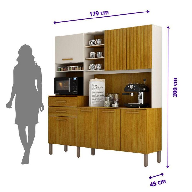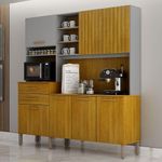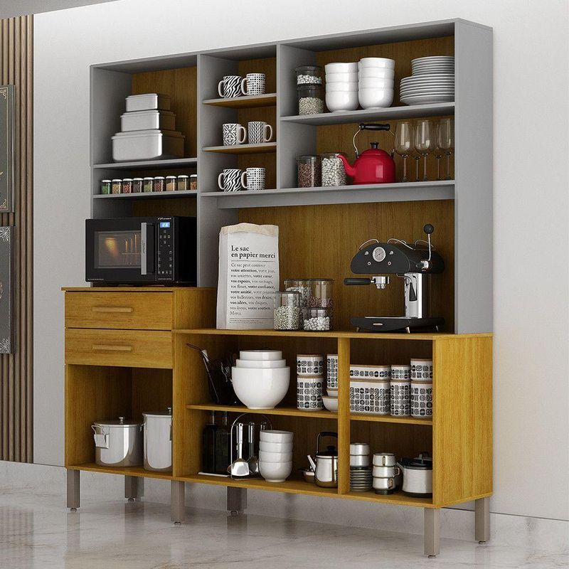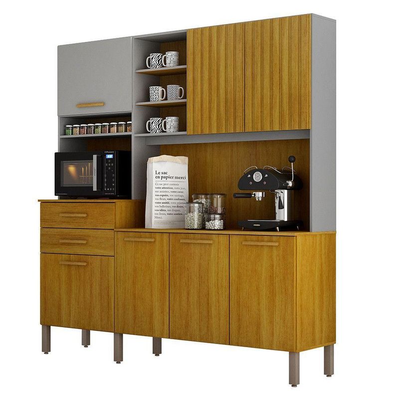 Armário De Cozinha Lian 7 Portas 2 Gavetas Nicho Mobilihouse Cinamomo/cinza AcetinadoO Armario de Cozinha 7 Portas 2 Gavetas com Nicho e Espaco para Micro-ondas Lian e a escolha ideal para quem deseja uma cozinha organizada, funcional e elegante. Com sete portas e duas gavetas, oferece amplo espaco para armazenar loucas, utensilios, panelas e mantimentos, mantendo tudo sempre ao seu alcance. O espaco dedicado para micro-ondas otimiza o ambiente, facilitando o dia a dia, enquanto o nicho aberto adiciona um toque decorativo e pode ser usado para itens de uso frequente. Com um design moderno e bem planejado, esse armario e perfeito para quem busca praticidade sem abrir mao do estilo.Caracteristicas:Marca: MobilihouseModelo: LianPortas: 7Prateleiras: 3Gavetas: 2Ambiente: CozinhaMaterial: MDPEstilo: ModernoDimensoes:Altura: 200 cmLargura: 179,6 cmProfundidade: 45 cmPeso: 86,1 kgGarantia do Fabricante: 3 meses