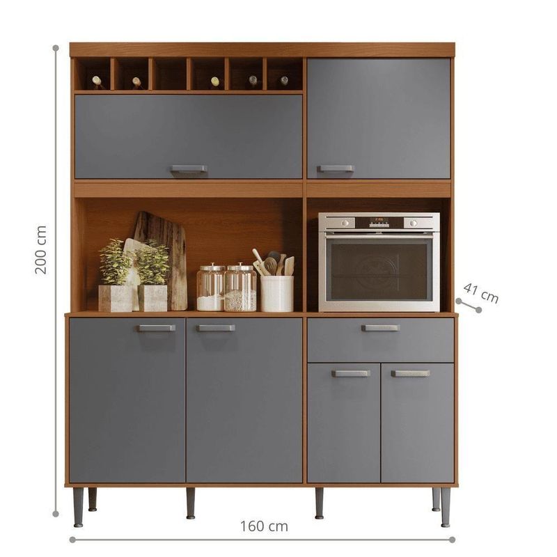 Armario De Cozinha Oma Jequitiba/grafiteA Cozinha Completa é perfeita para quem busca funcionalidade e praticidade em espaços reduzidos. Com design compacto e moderno, ela oferece tudo o que você precisa para organizar o dia a dia com charme e eficiência.Dimensões do produto montado:Altura: 200 cmLargura: 160 cmProfundidade: 41 cmCaracterísticas:- Material MDP- Cor jequitiba/grafite- Gaveta- Porta- Prateleira- Nicho- PéItens Incluso:01 Kit cozinha.Kit completo para montagem.Manual de montagem.Observações:- Não nos responsabilizamos pela montagem do produto.- Sistema de Montagem: Parafusos, Cavilhas e Tampos.- É recomendado que a montagem seja feita por um profissional qualificado.- As imagens indicam uma sugestão de uso e são apenas ilustrativas, os objetos decorativos não estão inclusos.- Ao iniciar a montagem, forre o chão com o papelão das embalagens para proteger as peças de arranhões.Instruções e Cuidados:Limpar com pano seco, manter em lugar livre de umidade, ao abrigo de exposição direta ao sol. LARGURA DO PRODUTO COM EMBALAGEM (CM): 58 | MATERIAL PRINCIPAL: MDP | ESTADO DE ORIGEM: SP | PESO DO PRODUTO (KG): 84 | INSTRUÃ?Ã-ES/CUIDADOS: Limpar com pano macio e seco, não utilizar produtos abrasivos. | COMPRIMENTO DO PRODUTO (CM): 41 cm | GARANTIA DO FABRICANTE: 3 | DESCRIÃ?Ã?O DO TAMANHO: 200X160X41 | PRODUTO: KIT COZINHA | CORES DO PRODUTO (FILTRO DE CORES): JEQUITIBA/GRAFITE | MARCA: CASAH | COR PREDOMINANTE: JEQUITIBA/GRAFITE | QUANTIDADE DE CAIXAS NA EMBALAGEM: 4 | QUANTIDADE DE NICHOS: 8 | QUANTIDADE DE GAVETAS: 4 | COMPRIMENTO DO PRODUTO COM EMBALAGEM (CM): 167 | PESO DO PRODUTO COM EMBALAGEM (KG): 84 | ALTURA DO PRODUTO COM EMBALAGEM (CM): 34 | PRODUTO PRECISA DE MONTAGEM?: Sim, a montagem à facil mas sugerimos a contratação de um montador profissional para a montagem do produto. Não nos responsabilizamos por danos causados no ato da montagem. | QUANTIDADE DE PORTAS: 6 | ALTURA DO PRODUTO (CM): 200 cm | LARGURA DO PRODUTO (CM): 160 cm | REQUER MONTAGEM?: SIM | inclui manual de montagem?: sim