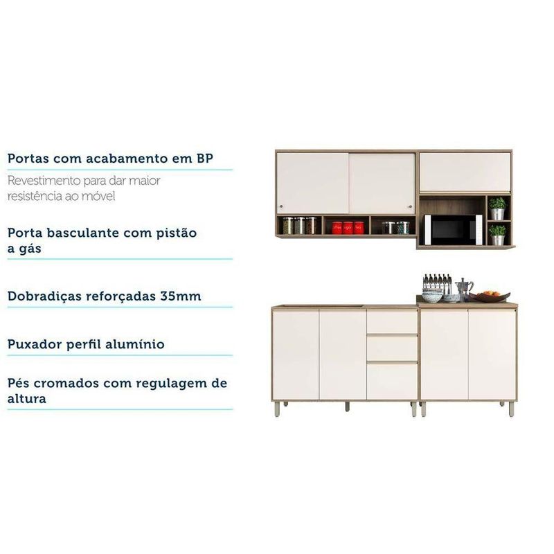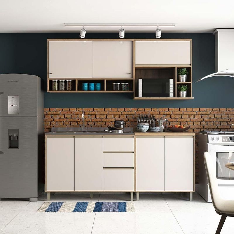 Armário De Cozinha Com Bancada Gourmet Sem Tampo De 120 Mel Luciane Móveis Vanilla Com Pérola OffUma cozinha modulada linda, compacta, para deixar seu ambiente super aconchegante e requintado. Composta por 5 peças cuidadosamente pensadas para sua organização. As portas embutidas remetem ao planejado, com acabamento impecável. Os módulos são montados individualmente e permite a instalação da forma que melhor se adeque ao seu espaço. Contém uma bancada mesa gourmet que pode ser utilizada como divisor de ambientes e para refeições no dia a dia. O Armário aéreo contém portas de correr, o nicho para micro-ondas com porta basculante para colocar tudo no lugar. Para este ambiente utilizamos como proposta 259,5cm de parede. Características da Cozinha Mel: Corpo/Caixaria: MDP com Pintura U.V. Vanilla UV Touch Frontais: MDP com Pintura U.V. na cor Pérola Off Corrediças Telescópicas: Abertura total das gavetas Dobradiças: Metálicas Ø26mm Puxadores: Alumínio Gola - Inox Pés: P S com regulagem de altura na cor Champagne Bancada Mesa Gourmet na cor Nogueira Dourado (Acabamento em BP) Cozinha Composta por: 1 Bancada Ilha Gourmet de Cozinha 3 Prateleiras 1 Armário aéreo 120cm 2 Portas de Correr e Nicho 1 Armário 80cm 1 Porta Basculante com Nicho Microondas 1 Balcão de Pia 120cm 2 Portas 3 Gavetas (sem tampo) 1 Balcão 2 Portas 80cm com Tampo *Dimensões do Balcão de Cozinha Para Pia Sem Tampo 120cm 2 Portas de abrir 3 Gavetas Mel Luciane Móveis Altura: 87 cm Largura: 120 cm Profundidade: 51.5 cm Peso: 50.4 Kg *Dimensões do Balcão de Cozinha com Tampo 80cm 2 Portas de abrir 1 Prateleira Mel Luciane Móveis Altura: 89.5 cm Largura: 80 cm Profundidade: 53 cm Peso: 30,81 Kg *Dimensões do Armário Aéreo 80 cm 1 Porta Basculante Nicho Micro Conjugado e Nicho Lateral Mel Luciane Altura: 82 cm Largura: 80 cm Profundidade: 42 cm Peso: 19.78 Kg *Dimensões do Armário Aéreo 120 cm 2 Portas de Correr e Nicho Inferior Mel Luciane Móveis Altura: 73 cm Largura: 120 cm Profundidade: 31.5 cm Peso: 31.51 Kg *Dimensões da Bancada Mesa Gourmet para Cozinha 150cm X 97cm com 3 Prateleiras Suprema Luciane Móveis Altura: 97cm Largura: 150cm Profundidade: 54,5cm Peso: 41 Kg Garantia do Fornecedor: 3 meses contra defeito de fabricação Informações complementares: Fique de olho: siga sempre as orientações do fabricante e utilize seu produto de acordo com o manual. A empresa não se responsabiliza pelo mau uso do produto, o que pode causar perda da garantia.#8239; Certifique se que seus dados estejam atualizados, como endereço e um telefone válido. A entrega será realizada no térreo, sendo assim em prédios o deslocamento da mercadoria, subir escadas, elevadores ou transporte por guincho para apartamentos fica sob responsabilidade do comprador. Todas as nossas entregas são realizadas em horário comercial, não sendo possível fazer agendamento, sugerimos acompanhar o rastreio do pedido e ter alguém para receber no endereço indicado. Não nos encarregamos por montagens, desmontagens e outras instalações, serão de responsabilidade do comprador.