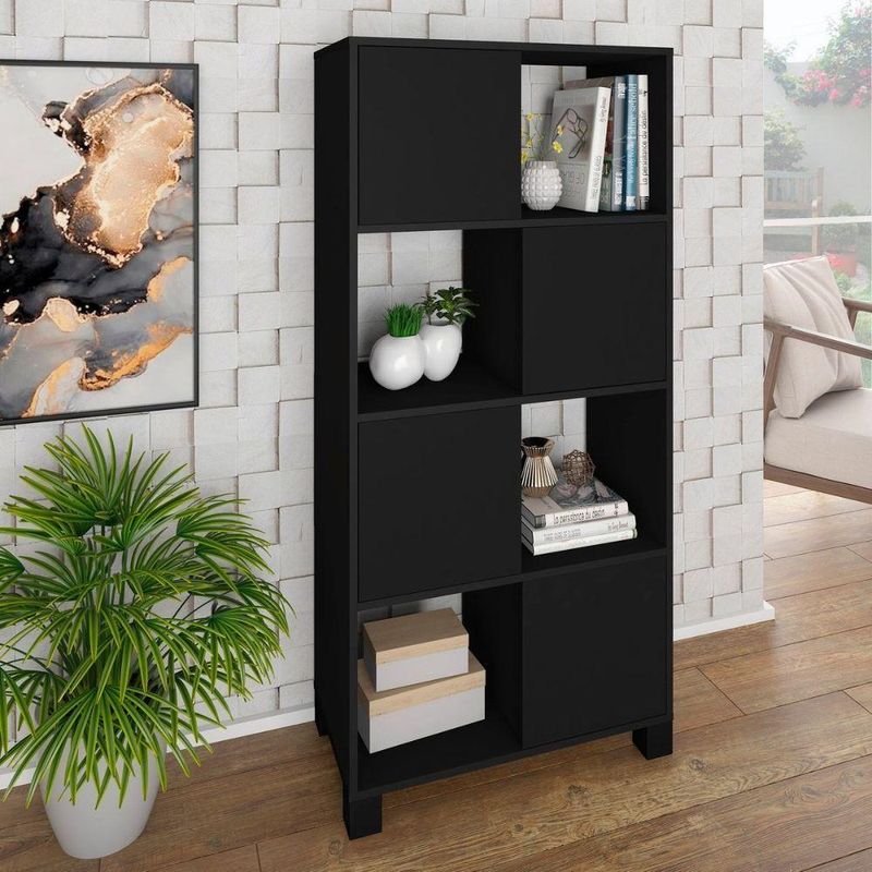 Armário Estante Com 4 Nichos 4 Portas Wally PretoArmário Estante com 4 nichos 4 portas Wally Preto - Materiais de alta qualidade, um produto robusto, forte e sofisticado.Elegância e Funcionalidade: Armário WallyAdicione um toque de sofisticação e modernidade ao seu ambiente com o Armário Wally. Este móvel multifuncional, com seu design elegante e linhas arrojadas, é a escolha perfeita para quem busca otimizar espaço com estilo e personalidade.Características Gerais do Produto:- Acabamento: BP- Acompanha Manual: Sim- Altura (cm): 145 cm- Largura (cm): 67,5 cm- Profundidade (cm): 36 cm- Material Prateleiras: MDP- Quantidade De Prateleiras: 4- Quantidade De Nichos: 4Peso suportado por Nicho: 5kg- Peso (Kg): Peso Montado: 32 kg- Acabamento da Fita Borda: Fita de borda PVC com 0,45mm de espessura- Matéria-prima: MDP- Sistema de montagem: Tambor e parafuso minifix.- Garantia: 3 meses- Quantidade de Portas: 4- Recomendações: Limpeza com pano levemente umedecido.Acompanha o produto:- 1 Armário Wally 1 ManualGarantia:- 3 Meses