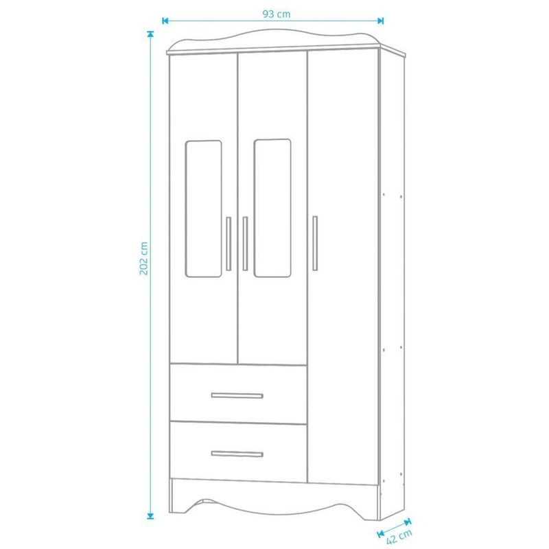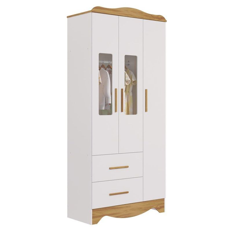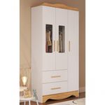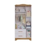 Armário Infantil 3 Portas 2 Gavetas Clara - Moveis Peroba Amendoa/brancoO Armário Clara 3 Portas Plus é um produto 100% MDF e possui pintura atóxica. Sua estrutura é fabricada em chapa de 12 mm, sendo seu tampo superior em chapa de 15 mm. Possui puxadores em MDF revestido com papel melamínico, cabideiro metálico e gavetas com corrediças telescópicas. Acompanha dois modelos de rodapés que podem ser definidos no momento da montagem e suas portas possuem detalhe com PETG cristal.MedidasAltura: 202,0 cmLargura: 92,9 cmProfundidade: 42,0 cmMaterial PrincipalMDFMaterial dos FundosHDFAcabamento PrincipalVerniz UVLimpeza e ConservaçãoPara limpeza utilizar somente pano limpo e macio, ligeiramente umedecido em água (apenas o bastante para remover a poeira), seguido de um pano seco.Qtd de Prateleiras5Material da PrateleiraMDFEscala de Brilho da PrateleiraSemibrilhoPeso Máximo por Prateleira (kg)5Qtd de Gavetas2Acabamento da GavetaPintura UV e Fita de BordoTipo de Puxador da GavetaPerfil externoMaterial do Puxador da GavetaMDF revestidoNecessita de MontagemSimComplexidade da MontagemAlta: deve ser montado por um montador especializado.Observações:- Todos os produtos têm três (03) meses de garantia fornecida pelo fornecedor- As imagens são meramente ilustrativas, os objetos que ambientam as fotos não acompanham o produto.- Pode haver alguma diferença de tonalidade entre a foto e o produto, devido ao tratamento de imagens e a calibração do monitor- A entrega é realizada por transportadora, não nos responsabilizamos, no ato da entrega por desmontagens, subir escadas/elevadores ou transporte por guincho para apartamentos- Eventuais despesas são de responsabilidade do cliente- Confira as dimensões dos volumes e certifique-se de que passará normalmente por supostos elevadores, portas, escadas ou corredores- Ao receber a mercadoria, verifique as condições da embalagem, caso haja alguma avaria, entre em contato com nosso SAC- Nossa empresa não se responsabiliza pela montagem dos produtos, mas todos os produtos possuem manual de montagem. Recomendamos que a montagem seja feita por profissional de sua confiança.