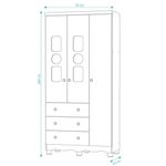 Armário Infantil 3 Portas 3 Gavetas Tedy - Moveis Peroba Amendoa/brancoO Armário Tedy New 3 Portas é um produto 100% MDF e possui pintura atóxica. Sua estrutura é fabricada em chapa de 12 mm e seus pés são injetados em plástico de alta resistência. Os puxadores são também em plástico. Os cabideiros são metálicos e suas gavetas possuem corrediças apoiadas metálicas. Acompanha dois modelos de rodapés que podem ser definidos no momento da montagem e suas portas possuem detalhe com PETG cristal.MedidasAltura: 188,5 cmLargura: 91,9 cmProfundidade: 41,5 cmMaterial PrincipalMDFMaterial dos FundosHDFAcabamento PrincipalVerniz UVLimpeza e ConservaçãoPara limpeza utilizar somente pano limpo e macio, ligeiramente umedecido em água (apenas o bastante para remover a poeira), seguido de um pano seco.Qtd de Prateleiras5Material da PrateleiraMDFEscala de Brilho da PrateleiraSemibrilhoPeso Máximo por Prateleira (kg)5Qtd de Gavetas3Acabamento da GavetaPintura UV e Fita de BordoTipo de Puxador da GavetaPerfil externoMaterial do Puxador da GavetaMDF revestidoNecessita de MontagemSimComplexidade da MontagemAlta: deve ser montado por um montador especializado.Observações:- Todos os produtos têm três (03) meses de garantia fornecida pelo fornecedor- As imagens são meramente ilustrativas, os objetos que ambientam as fotos não acompanham o produto.- Pode haver alguma diferença de tonalidade entre a foto e o produto, devido ao tratamento de imagens e a calibração do monitor- A entrega é realizada por transportadora, não nos responsabilizamos, no ato da entrega por desmontagens, subir escadas/elevadores ou transporte por guincho para apartamentos- Eventuais despesas são de responsabilidade do cliente- Confira as dimensões dos volumes e certifique-se de que passará normalmente por supostos elevadores, portas, escadas ou corredores- Ao receber a mercadoria, verifique as condições da embalagem, caso haja alguma avaria, entre em contato com nosso SAC- Nossa empresa não se responsabiliza pela montagem dos produtos, mas todos os produtos possuem manual de montagem. Recomendamos que a montagem seja feita por profissional de sua confiança.