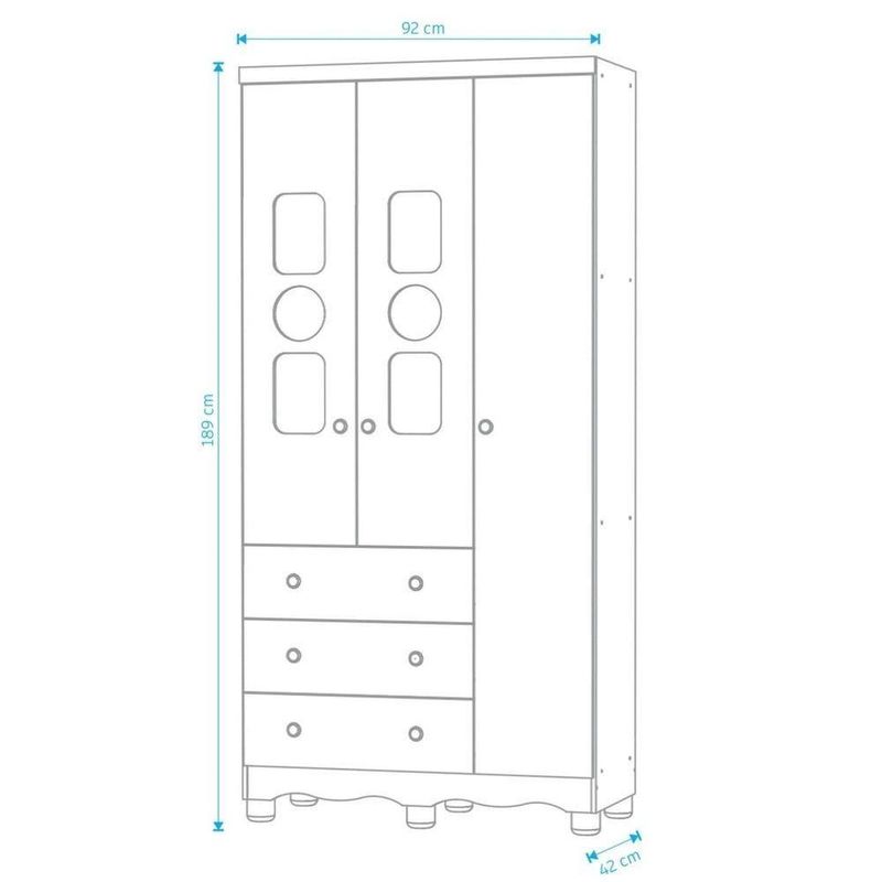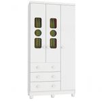 Armário Infantil 3 Portas 3 Gavetas Tedy - Moveis Peroba Branco BrilhoO Armário Tedy New 3 Portas é um produto 100% MDF e possui pintura atóxica. Sua estrutura é fabricada em chapa de 12 mm e seus pés são injetados em plástico de alta resistência. Os puxadores são também em plástico. Os cabideiros são metálicos e suas gavetas possuem corrediças apoiadas metálicas. Acompanha dois modelos de rodapés que podem ser definidos no momento da montagem e suas portas possuem detalhe com PETG cristal.MedidasAltura: 188,5 cmLargura: 91,9 cmProfundidade: 41,5 cmMaterial PrincipalMDFMaterial dos FundosHDFAcabamento PrincipalVerniz UVLimpeza e ConservaçãoPara limpeza utilizar somente pano limpo e macio, ligeiramente umedecido em água (apenas o bastante para remover a poeira), seguido de um pano seco.Qtd de Prateleiras5Material da PrateleiraMDFEscala de Brilho da PrateleiraSemibrilhoPeso Máximo por Prateleira (kg)5Qtd de Gavetas3Acabamento da GavetaPintura UV e Fita de BordoTipo de Puxador da GavetaPerfil externoMaterial do Puxador da GavetaMDF revestidoNecessita de MontagemSimComplexidade da MontagemAlta: deve ser montado por um montador especializado.Observações:- Todos os produtos têm três (03) meses de garantia fornecida pelo fornecedor- As imagens são meramente ilustrativas, os objetos que ambientam as fotos não acompanham o produto.- Pode haver alguma diferença de tonalidade entre a foto e o produto, devido ao tratamento de imagens e a calibração do monitor- A entrega é realizada por transportadora, não nos responsabilizamos, no ato da entrega por desmontagens, subir escadas/elevadores ou transporte por guincho para apartamentos- Eventuais despesas são de responsabilidade do cliente- Confira as dimensões dos volumes e certifique-se de que passará normalmente por supostos elevadores, portas, escadas ou corredores- Ao receber a mercadoria, verifique as condições da embalagem, caso haja alguma avaria, entre em contato com nosso SAC- Nossa empresa não se responsabiliza pela montagem dos produtos, mas todos os produtos possuem manual de montagem. Recomendamos que a montagem seja feita por profissional de sua confiança.