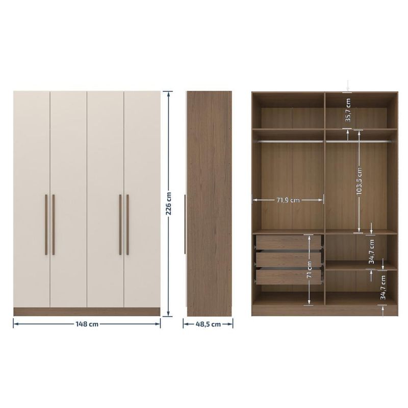 Armário Modulado Bartira Lugano com 4 Portas 3 Gavetas 3 Prateleiras Casal – Avelã/Capuccino