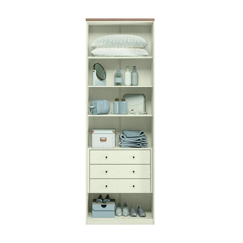 Organize Seu Quarto Com Mais Qualidade O módulo conta com amplas prateleiras e a opção de um cabideiro oblongo em alumínio, podendo escolher entre eles. Design Moderno e Sofisticado O móvel possui três gavetas internas com corrediças telescópicas e puxadores em ABS. Além disso, conta com dobradiças equipadas com amortecedor para reduzir impactos e puxadores externos em alumínio. Feito com Materiais Sustentáveis O modelo apresenta aplicação de pintura Reverse em toda a sua superfície externa, proporcionando um leve toque texturizado. Feito em MDF, conta ainda com processos de fabricação que garantem maior cuidado com o meio ambiente.