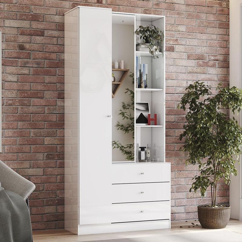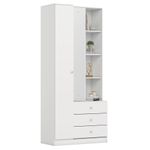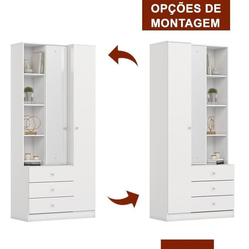 Armário Multiuso 2 Portas 3 Gavetas Doha Branco Com Espelho - Móveis Henn Branco Armário Multiuso 2 Portas 3 Gavetas Doha - Móveis Henn O Armário Multiuso é a solução ideal para quem busca versatilidade, organização e estilo em um único móvel. Produzido em MDP com pintura UV, conta com duas portas, três gavetas com corrediças telescópicas, prateleiras internas e amplo espaço para acomodar diferentes itens. Possui puxadores pontuais em ABS, dobradiças metálicas, espelho integrado e nichos decorativos que valorizam o ambiente, tornando-o funcional e elegante para diversos espaços da casa.ESPECIFICAÇÕES: - Estrutura em MDP - Pintura UV - 2 Portas - Puxadores pontuais em ABS - Espelho - Nichos decorativos - Dobradiças metálicas - 3 Gavetas - Corrediças telescópicas - Interna com prateleiras - Amplo espaço Dimensões: Tamanho do Produto (L x A x P): 80 x 180,5 x 40 cm Garantia: 3 meses Montagem: O Produto vai desmontado com manual e todos acessórios. Recomendamos que a montagem seja feita por um profissional Recomendação de Limpeza: Utilize pano levemente úmido Observações: - A LOJA se responsabilizará pela entrega dos produtos até aonde as rodovias alcançam, entregas fluviais ou aéreas devem ser cotadas a parte. - As imagens são ilustrativas, não acompanham objetos de decoração. - Pode haver alguma diferença de tonalidade entre a imagem e o produto, por conta do tratamento de imagens e a calibração de cores da sua tela. - A montagem será de responsabilidade do comprador. Entregamos até a porta de entrada da residência ou até a portaria do condomínio. Não nos responsabilizamos, no ato da entrega, por subir escadas/elevadores ou transporte por guincho em apartamentos. Eventuais despesas são de responsabilidade do comprador. - Confira as dimensões do produto no momento da compra e certifique-se de que passará normalmente por supostos elevadores, portas, escadas e/ou corredores de sua residência. Para mais informações, acesse nossa Central de Atendimento. NA Branco