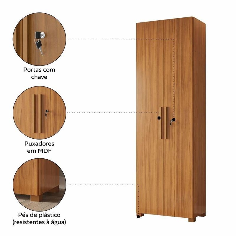 Armário Multiuso Com Chave 211cm Nt4050 Freijó Notável MóveisO Multiuso NT 4050 da Notável Móveis combina praticidade e em um design funcional para o dia a dia. Seus puxadores em MDFmantêm o visual clean e moderno, enquanto a porta com chave garante mais proteção para o que realmente importa. Com estruturarobusta de 15 mm e amplo espaço de armazenamento, ele é a solução ideal para organizar diferentes ambientes com eficiência e estilo.DIFERENCIAIS:-AMPLO ESPAÇO DE ARMAZENAMENTO-ESTRUTURA DE 15MM-PORTA COM CHAVE-PUXADORES EM MDFDESCRIÇÃO TÉCNICA:Altura: 211,1 cmLargura: 67,8 cmProfundidade: 37,3 cmPeso 45,41 kgOBSERVAÇÕES:Necessita montagem: simAcompanha manual de montagem: simQuantidade de volume (s): 1Garantia: 90 dias contra de fabricaçãoRECOMENDAÇÃO:- Para maior durabilidade, recomenda-se que a limpeza seja feita com pano limpo e levemente umedecido em água e sabão neutro. Em seguida, deverá ser passado um pano limpo e seco.MONTAGEM E :- Não oferecemos montagem. Os nossos móveis são entregues desmontados e todos acompanham manual com instruções de montagem.- Sempre verifique o nível de complexidade de montagem e em caso de dúvida não monte sozinho (a), contrate um - Nos responsabilizamos pela dos produtos adquiridos até a porta de entrada ou portaria do indicado, se a portaria do condomínio permitir, as são efetuadas no piso térreo e é de responsabilidade do cliente a locomoção da mercadoria até seu apartamento ou casa. As transportadoras não estão autorizadas a subir escadas, elevadores ou realizar o içamento de produto.IMAGENS:- As imagens ambientadas são meramente ilustrativas e podem apresentar itens que não compõe o produto.- Objetos decorativos da imagem não acompanham o produto.- As cores do produto podem sofrer variação de acordo com o seu monitor a iluminação do seu ambiente ou sua percepção visual.Requer montagem: Sim | Quantidade de caixas de embalagem: 1 | Inclui manual de montagem: Sim | Cor: Branco | Altura embalagem vendedor: 12 cm | Largura embalagem vendedor: 217 cm | Comprimento embalagem vendedor: 47 cm | Peso embalagem vendedor: 47300 g | Cor: Freijó Trend