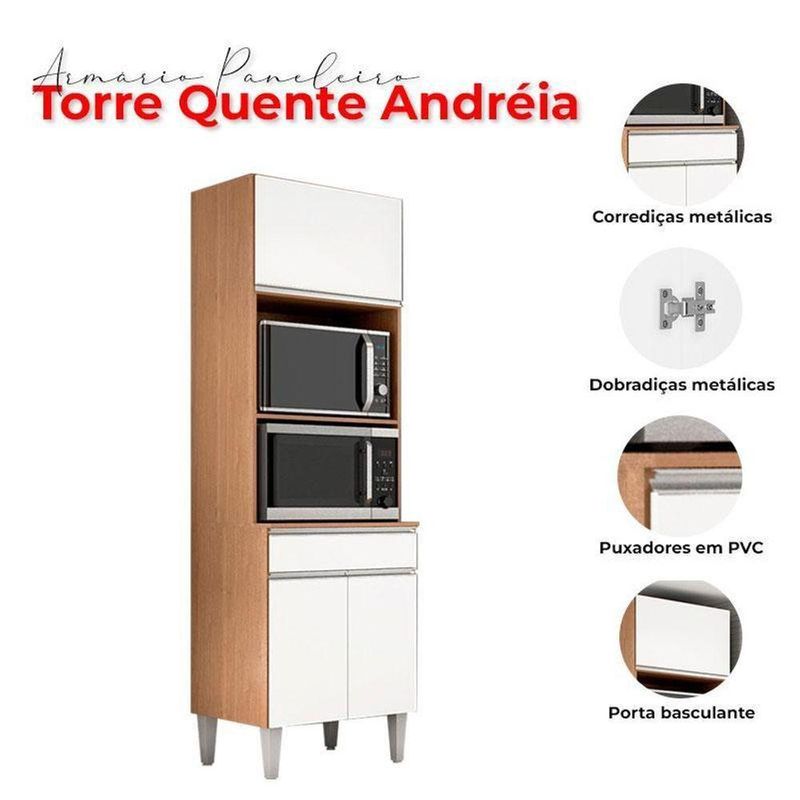 Armário Paneleiro Torre Quente 2 Fornos Ambiente Andréia Amêndoa Branco - AjlArmário Paneleiro Torre Quente 2 Fornos Ambiente Andréia Amêndoa Branco - AJLEstá montando sua cozinha? Apresentamos para você este belo armário torre quente da linha Andréia. Possuindo três portas, sendo uma basculante, além de uma gaveta com corrediças metálicas, proporcionando um deslizamento suave e seguro. O destaque fica por conta dos dois nichos, com espaço para acomodar seu microondas e outros eletros de forma prática e organizada. Com puxadores e pés em PVC, alia robustez com facilidade na hora da limpeza. Fabricado pela AJL, é desenvolvido em 100% MDP, será uma excelente opção para complementar sua cozinha com estilo e funcionalidade. Aproveite e garanta já o seu!Características Técnicas:- Desenvolvido em 100% MDP - Acabamento em pintura UV na cor Amêndoa Branco - Possui 2 portas - Possui 1 porta basculante - Possui 1 gaveta - Possui 2 nichos - Dobradiças metálicas - Pistão a gás - Corrediças metálicas - Puxadores em PVC - Pés em PVC - Amplo espaço interno - Design modernoDimensões: Altura: 202 cm Largura: 60 cm Profundidade: 51 cmOBS.: Não acompanha decorações, utensílios, eletros e acessórios.Informações importantes: *Imagens meramente ilustrativas, cores e estampas podem variar conforme lote. *Não realizamos a montagem ou instalação do produto, porém acompanha manual de instruções. *Toda mercadoria segue segurada contra qualquer sinistro, em caso de anormalidade, recuse. *Conferir a quantidade de volumes. *As caixas ou pacotes possuem identificação com o nome, cidade e quantidades de volumes relativos à compra para conferencia. NA