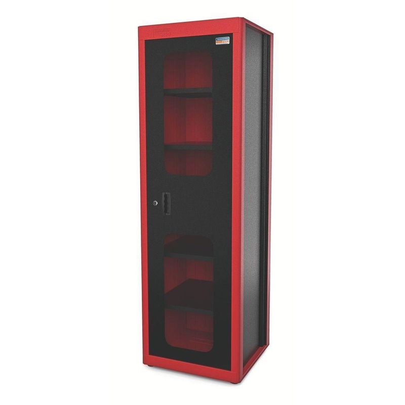 Armário Para Ferramentas Com 1 Porta E Visor Vermelho Tramontina Pro Vermelho TramontinaArmário para Ferramentas com 1 Porta e Visor Vermelho Tramontina PRO Vermelho Tramontina -Armário para Ferramentas com 1 Porta e Visor Vermelho Tramontina PRO VermelhoOs organizadores modulares da Tramontina PRO permitem mobiliar oficinas mecânicas e concessionárias de forma personalizada. São diversas opções de móveis totalmente fabricados no Brasil e divididos em armários, painéis, bancadas, estantes e carros de ferramentas, que vão deixar o ambiente de trabalho mais bonito, organizado, seguro e ágil, pois cada ferramenta terá o seu lugar. Além disso, é possível personalizar a cor do organizador, escolher as ferramentas, gravar o nome da pessoa ou setor em cada ferramenta e ainda escolher a posição do organizador no ambiente de trabalho. Porque não basta ter a ferramenta certa, é preciso ter ela sempre à mão.Estrutura em chapas de aço conformadas. 1 porta com abertura de 100° com visores de acrílico. Tranca para a porta. Pintura eletrostática. Capacidade de carga máxima distribuída: 200 kg. Capacidade de carga distribuída de cada prateleira: 60 kg. Espessuras das chapas do corpo, porta e prateleiras: 0,9 mm.Utilizado para armazenamento de ferramentas. Possui 5 prateleiras móveis que possibilitam diferentes configurações de montagem. Com 4 pés para regulagem de altura, para compensar irregularidades no piso. Porta com visores de acrílico que possibilita visualizar a parte interna. Capacidade de carga e resistência da estrutura comprovadas através de testes práticos.Cuidados com o produto Use óculos, luvas e outros equipamentos de proteção individual (EPIs) de acordo com a tarefa a ser executada.Não sobrecarregar as prateleiras com peso excessivo. Evite deixar o armário desnivelado, pois isso pode provocar a queda do mesmo. Para fazer a limpeza dos visores, utilize apenas um pano umedecido com água e detergente neutro.Respeite sua cidade e o meio ambiente, para descarte dos produtos e embalagens, siga as orientações de reciclagem vigentes.GarantiaGarantia total contra vícios ou defeitos de fabricação. - -Características Gerais do Produto:Garantia: - 3 Meses
