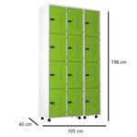 Armário Roupeiro Aço 12 Portas Academia Guarda Volume Trinco VerdeRoupeiro de Aço EA715ARMÁRIO ROUPEIRO DE AÇO 12 PORTAS ORGANIZADOR GUARDA-VOLUMES VESTIÁRIO ACADEMIAPRONTA ENTREGA! PRODUTO DISPONÍVEL PARA ENVIO IMEDIATO! (DESPACHO EM ATÉ 24 HORAS)O Armário Roupeiro de Aço 12 Portas Vestiário Academia Guarda-Volumes com trinco para cadeados é perfeito para alojamentos, escritórios, almoxarifados, laboratórios, hospitais, farmácias, depósitos, academias, supermercados, vestiários, e diversos outros ambientes.Produto enviado desmontado, com baixíssimo custo de frete e fácil montagem, acompanha manual e possui vídeo explicativo.O Armário Roupeiro De Aço 12 Portas Vestiário Academia Guarda-Volumes foi desenvolvido com aço de alta qualidade, garantindo maior robustez máxima de resistência à estrutura da peça, tornando seu tempo de vida útil mais elevado. Sua pintura eletrostática em tinta epóxi, proporciona ainda mais proteção a ela. Perfeita para a organização do seu ambiente.Ele é composto por 12 portas que cabem todos os modelos de capacetes e outros pertences. Super resistente, suporta até 30Kg bem distribuídos por compartimento. Possui pés niveladores para um perfeito acabamento e evitando assim riscos no piso. Porta com trinco para cadeado que permanece fechada mesmo que esteja sem o cadeado no momento - diferente do pitão tradicional que precisa ser amarrado para evitar que fique batendo - perfeito acabamento e praticidadeCaracterísticas do Produto- Quantidade de portas: 12- Chapa das prateleiras: 26 (0,45mm)- Dimensões (ALP/cm): 198 x 105 x 40- Pintura: Eletrostática / Epóxi- Peso suportado: 30Kg por compartimentoConteúdo da Embalagem- 12 Portas- 09 Prateleiras- 02 Bases- 02 Tetos- 03 Fundos- 04 Laterais- 04 Travas- 01 Divisória- 08 Pés niveladores + sapatas- 02 Kit de acessórios completo- 02 Manuais de MontagemGARANTIAS:- Garantia de 03 meses de fábrica contra defeitos de fabricação- Garantia extra de +03 meses da loja contra eventuais defeitos de fabricaçãoImportante: Este produto é entregue desmontado, junto ao manual de instruções e todos os acessórios necessários para seu perfeito encaixe e uso. Indicamos que você contrate um profissional especializado para sua montagem; Certifique-se de que todas as características do produto atendem sua necessidade antes de efetuar a compra, desta forma garantimos que você irá adquirir um excelente artigo que possa usufruir; Lembre-se de que as imagens do anúncio são ilustrativas, podendo suas cores ter variações em razão do monitor ou da luz.O Armário Roupeiro De Aço 12 Portas Vestiário Academia é fabricado pela Elite Aço, indústria de móveis de aço e tubular presente no mercado há mais de duas décadas, oferecendo produtos inovadores de alta qualidade e estilo para atender as necessidades de seus clientes.