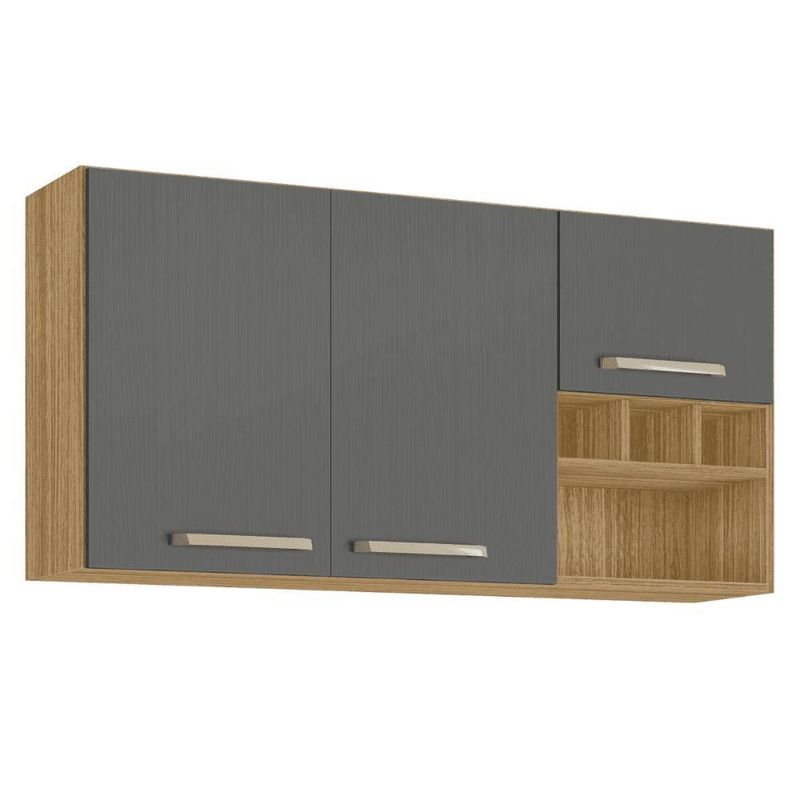 Armário Susp. 3 Portas 3 Gaveteiros 1,20 Ametista Freijó GrisO Armário Suspenso destaca-se por sua praticidade e eficiência de uso, podendo ser utilizada como complemento de cozinha.Estrutura em MDP 15mm com pintura UV.Dimensões do Produto:Altura: 60 cmLargura: 120 cmProfundidade: 28,6 cmInformações do Produto:Cor: Freijó/GrisPortas: Sim (3) BasculantePuxadores: Sim (3)Gavetas: NãoPés: NãoPrateleira: Sim (1)Nichos: Sim (4)Material Principal: MDP 15mmItens Inclusos:1 ArmárioManual de MontagemKit completo para montagem e manual de instruçõesGarantia:3 meses contra defeito de fabricaçãoInformações Adicionais:- Fotos meramente ilustrativas do produto no ambiente.- Os objetos que ambientam as fotos não acompanham o produto;- Verificar descrição e tamanho do produto antes da compra.- Avaliar a mercadoria no ato do recebimento e recuse em caso de divergência ou avarias.- Mantenha as informações de contato e endereço de entrega atualizados para entrarmos em contato caso necessário.- Limpar com flanela ou pano macio seco, não utilizar produtos abrasivos, desengordurantes, álcool ou solvente. Não expor o produto diretamente à luz solar e à umidade.* Sugerimos a contratação de um montador profissional para a montagem do produto. Não nos responsabilizamos por avarias causadas no ato da montagem.* Não nos responsabilizamos pela montagem e desmontagem do produto no ato da entrega e devolução, assim como os custos gerados nestas situações.* A transportadora entregará o produto no andar térreo do endereço de entrega.* Não nos responsabilizamos por subir escadas, corredores e elevadores ou transporte por guincho em apartamentos. Material para Filtro: MDP | Weight: 24.7 | Width: 60 | Acompanha Colchão: Sem Colchão | Fabricante: Kits Paraná | Comprimento Produto com Embalagem (cm): 121,2 | REQUIRES_ASSEMBLY: Sim | Length: 121 | Num. Volumes: 1 | Tipo de Cama/Cabeceira: Padrão | Modelo: Ametista | Peso Produto Com Embalagem (Kg): 24,7 | Height: 6 | Largura Produto com Embalagem (cm): 60,2 | Altura do Produto com Embalagem (cm): 6,7 | Color: Marrom | Tonalidade (Leroy): Marrom