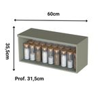 Armário Suspenso De Cozinha 60cm 1 Porta Multiuso CordaO Armário Suspenso de Cozinha com Altura de 60 cm e 1 Porta Multiuso é ideal para quem busca praticidade, organização e um design moderno. Compacto e funcional, oferece excelente aproveitamento do espaço vertical para armazenar utensílios, mantimentos e objetos do dia a dia, valorizando a cozinha com elegância.Fabricado em MDP com espessura de 1,5 cm, com tampo superior em MDP de 2,5 cm, garante resistência, segurança e durabilidade no uso diário. Possui dobradiças tipo caneco de 3,5 cm, que proporcionam abertura e fechamento suaves, além de porta basculante com pistão a gás, oferecendo mais conforto e praticidade. O perfil puxador em alumínio grafite com ponteiras em ABS reforça o visual moderno e sofisticado do móvel.O produto acompanha cantoneiras metálicas e parafusos para fixação segura na parede. O acabamento recebe sete camadas de pintura UV, assegurando visual uniforme, maior durabilidade e proteção contra desgaste.Indicado para cozinhas compactas ou planejadas, áreas gourmet, lavanderias e ambientes que exigem otimização de espaço e organização.Cuidados e limpeza: limpar com pano levemente umedecido e finalizar com pano seco. Evitar produtos abrasivos ou solventes químicos. Garantir instalação correta para segurança e estabilidade do armário.Ficha TécnicaTipo: Armário suspenso / armário aéreoAltura: 60 cmLargura: conforme padrão do fabricanteQuantidade de portas: 1Tipo de porta: BasculanteMaterial da estrutura: MDPEspessura da estrutura: 1,5 cmMaterial do tampo superior: MDPEspessura do tampo superior: 2,5 cmDobradiças: Tipo caneco 3,5 cmSistema de abertura: Porta basculante com pistão a gásPuxador: Perfil em alumínio grafite com ponteiras em ABSAcabamento: Pintura UV com 7 camadasFixação: Parede, com cantoneiras metálicas e parafusosIndicação de uso: Cozinha, área gourmet e lavanderiaConteúdo da embalagem: 1 armário e kit de ferragensMontagem: Necessita montagem e instalação na paredeDestaquesEstrutura em MDP resistentePorta basculante com pistão a gásDobradiças com abertura suavePerfil puxador em alumínio grafiteFixação segura na paredePintura UV durável e acabamento sofisticadoDesign moderno, compacto e funcionalTipo de móveis de cozinha: Armário | Requer montagem: Sim | Cor: Corda
