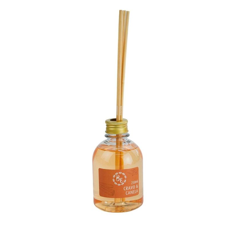 Aromatizador de Ambiente 250ml Cravo e Canela Aromatizador de ambiente 250ml Cravo e Canela. Contém fragrância de Cravo e Canela. Possui 250ml e acompanha 4 varetas de madeira reflorestada. Marca : ALOP Tipo de material : Água aromatizada Cores ou Estampa : Marrom