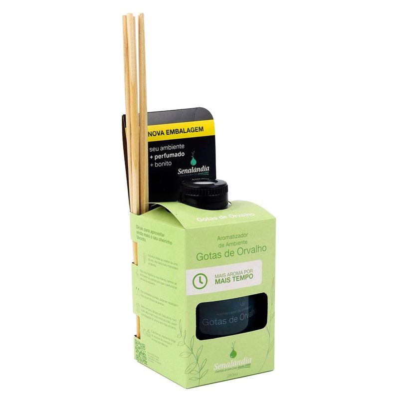 Aromatizador de Ambiente 280ml Gotas de Orval Aromatizador de ambiente 280ml Gotas de Orvalho. Contém fragrância de Gotas de Orvalho. Possui 280ml e acompanha 5 varetas de madeira reflorestada. Marca : SENALANDIA Tipo de material : Essência, álcool de cereais Cores ou Estampa : Verde