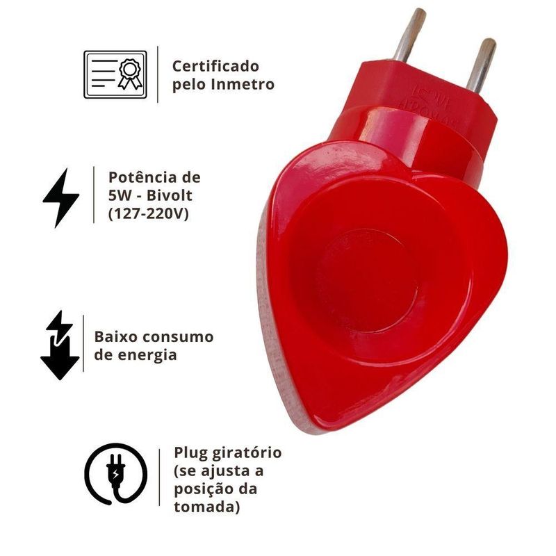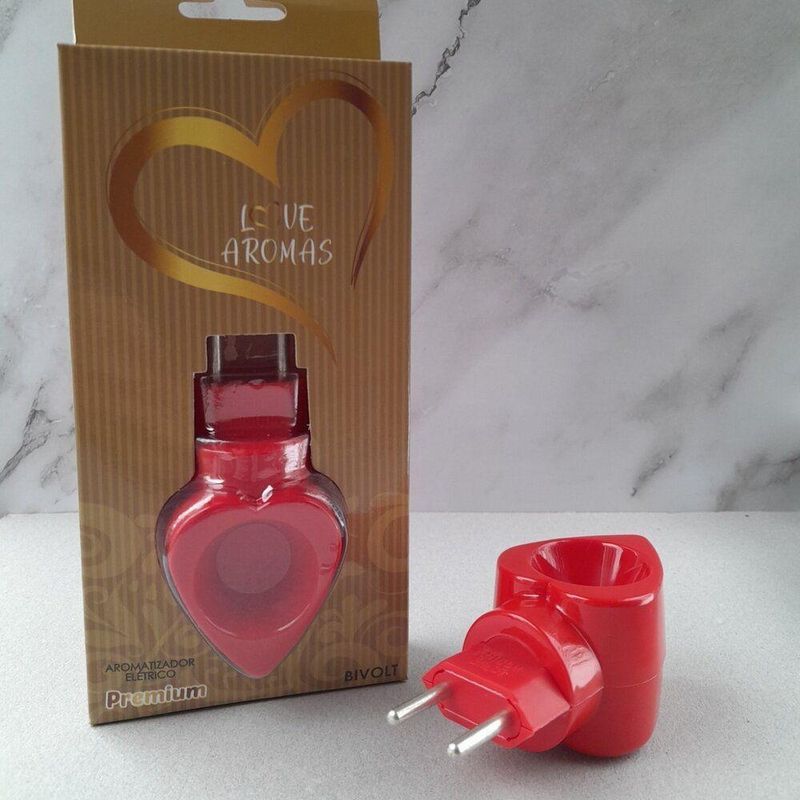 Aromatizador Difusor Elétrico De Essências Love Aromas Bivolt VermelhoAromatize seus ambientes com praticidade e eficiência usando o difusor elétrico Love Aromas em formato de coração. Ideal para uso com essências lipossolúveis (base oleosa) , óleos essenciais ou ceras aromáticas (wax melts), ele é funcional, seguro e fácil de usar.- Modelo exclusivo Love Aromas (formato de coração)- Compatível com essências lipossolúveis, óleos essenciais e wax melts (pastilhas aromáticas)- Bivolt automático (110V–220V)- Consumo baixo de energia- Aquecimento interno (não aquece por fora), proporcionando mais segurança durante o uso- Produto certificado pelo INMETRO- Aquece de forma contínua e segura- Encaixe giratório, ideal para qualquer posição da tomada- Fácil de limpar e manterEspecificações do produto:Material: polímero (plástico) resistente de alta qualidadeTensão: Bivolt automático (110V–220V)Potência: 5WÁrea de aromatização: até 30m² (se instalado fora de correntes de ar)Dimensões aproximadas: 7cm x 5cmCapacidade: 10mlAromatize seus ambientes com praticidade e eficiência usando o difusor elétrico Love Aromas em formato de coração. Ideal para uso com essências lipossolúveis (base oleosa) , óleos essenciais ou ceras aromáticas (wax melts), ele é funcional, seguro e fácil de usar.- Modelo exclusivo Love Aromas (formato de coração)- Compatível com essências lipossolúveis, óleos essenciais e wax melts (pastilhas aromáticas)- Bivolt automático (110V–220V)- Consumo baixo de energia- Aquecimento interno (não aquece por fora), proporcionando mais segurança durante o uso- Produto certificado pelo INMETRO- Aquece de forma contínua e segura- Encaixe giratório, ideal para qualquer posição da tomada- Fácil de limpar e manterEspecificações do produto:Material: polímero (plástico) resistente de alta qualidadeTensão: Bivolt automático (110V–220V)Potência: 5WÁrea de aromatização: até 30m² (se instalado fora de correntes de ar)Dimensões aproximadas: 7cm x 5cmCapacidade: 10ml