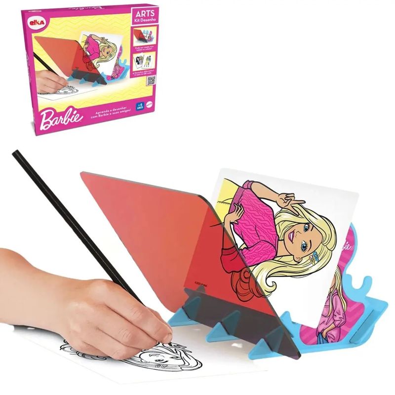 Com Art Kids da Barbie é possível copiar qualquer desenho, o kit vem com 4 desenhos da Barbie e 1 lápis, além da peça acrílica e do suporte para se fazer os desenhos. Na caixa do produto vem um QR code no qual é possível baixar mais desenhos da personagem. A criança pode copiar também os desenhos da tela do tablet ou celular.CARACTERÍSTICAS TÉCNICAS:Conteúdo da Embalagem: 6 peças plásticas (instruções de montagem dentro da embalagem), 2 cartelas com 4 desenhos, adesivo do suporte, 1 bloquinho de folhas (A5), 1 lapísDimensões Aproximadas da Embalagem: 26cm x 29cm x 5cm(Altura x Largura x Comprimento/Profundidade).Material/Composição: Plástico atóxico, adesivo, papel, papel cartão, grafite.Idade Mínima Recomendada: A partir de 6 anosParticipantes: A partir de 1 pessoaAlimentação: Não se aplicaMarca: ElkaReferência: 1323