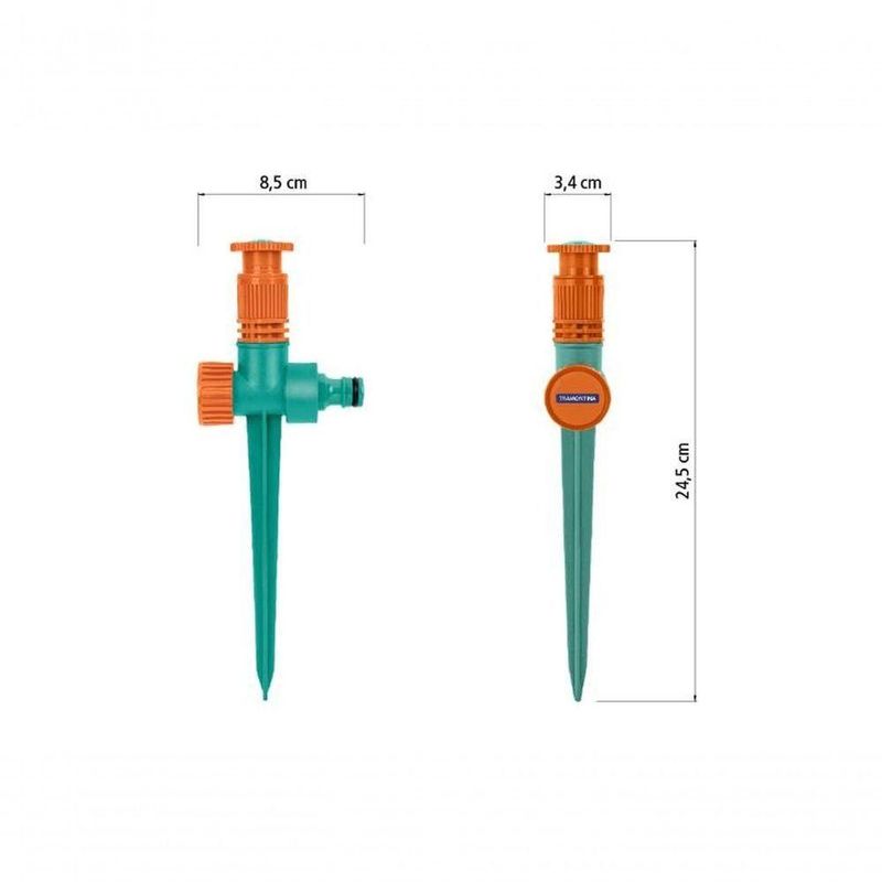 Aspersor Circular Tramontina Para Engate RápidoCom o aspersor circular para engate rápido Tramontina, você terá mais praticidade na hora de irrigar seu jardim. O produto é fabricado em plástico de alta resistência e contém engate rápido, facilitando na hora da execução. Além disso, o pontalete alongado dará mais estabilidade na fixação terrena do aspersor.Recomendações de Uso:Modo de uso: Utilizado para irrigar o jardim, gramados ou a horta doméstica. O aspersor é a ferramenta da ponta do sistema. Pode ser conectado em mangueiras com engate rápido de 1/2", 3/4" ou 5/8". ;Não é recomendado o uso do aspersor em redes de água com pressão inferior a 1 bar. Água pode faltar, ;não desperdice. Para descarte dos produtos e embalagens siga as orientações de reciclagem vigentes.- Foto meramente ilustrativa.Informações Adicionais:- Ângulo de trabalho de 0° a 360°;- Sistema intercambiável que se adapta a todo o sistema de irrigação;- Corpo em plástico de alta resistência e pontalete acoplado para fixação no terreno;- O aspersor é conectado em mangueiras de 1/2", 5/8" e 3/4" através de sistema de engate rápido;- Produto fabricado com matéria-prima de alta qualidade proporcionando uma irrigação precisa e ;- Tem uma área de cobertura de até 113 m² ou diâmetro de alcance do jato d'água de até 12 m - a uma pressão de 4 bar.