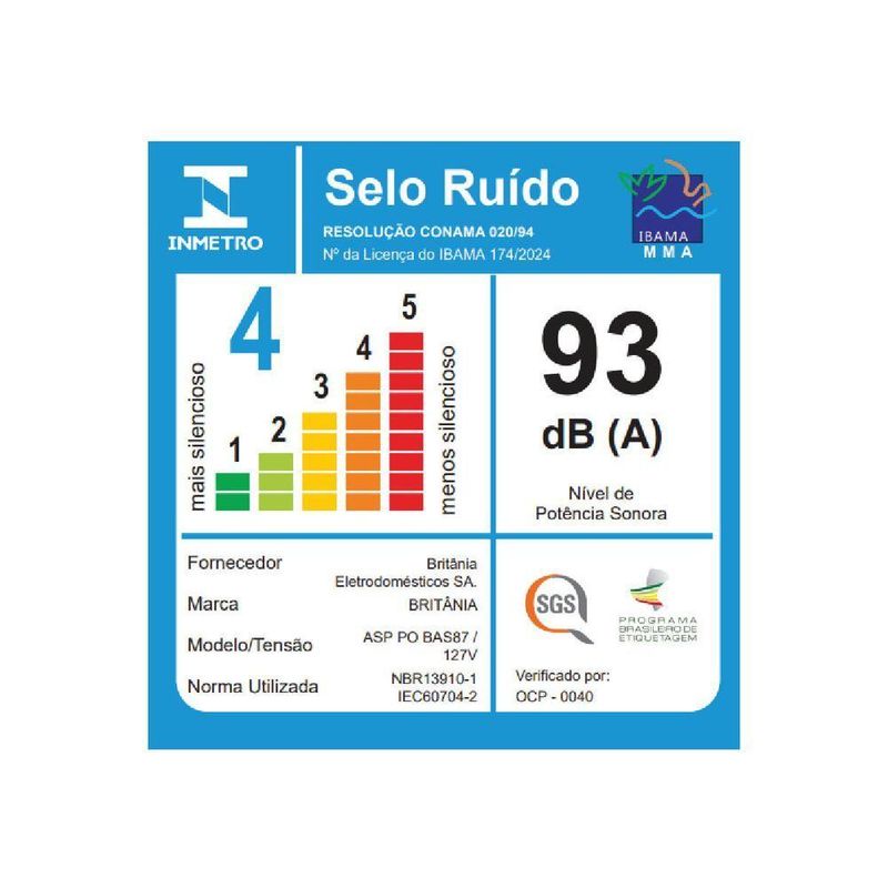 Aspirador De Pó Britânia 20L Função Sopro BAS87 110VImagine eliminar toda a sujeira da sua casa com um único equipamento. O Aspirador de Pó Britânia BAS87 combina 1500W de potência e 20L de capacidade para resolver desde limpezas rotineiras até aqueles desafios mais difíceis. Com ele, você aspira pó, líquidos e até sujeiras persistentes em ambientes internos e externos, sem precisar parar para esvaziar o recipiente a todo momento.A função sopro transforma seu aspirador em um aliado versátil: encha colchões de ar, balões ou acenda a churrasqueira com facilidade. Os acessórios completos incluídos garantem limpeza em pisos, carpetes, cantos e móveis, enquanto as rodinhas ágeis e o cabo de 3,2 metros oferecem mobilidade para limpar grandes áreas sem trocar de tomada.Com filtro lavável e design prático, o Aspirador de Pó Britânia 20L 1500W BAS87 é a solução inteligente para quem busca eficiência e durabilidade. Adquira já e transforme a limpeza da sua casa em uma tarefa rápida e satisfatória!Principais CaracterísticasPotência: 1500WEspecificação do plug (A): 10ACapacidade total do reservatório de pó (L): 20 litrosAlcance (m): 3,2 metrosTamanho da base (cm): 26cmAcessórios: 01 acessório para pisos e carpetes, 01 acessório para frestas e cantos, 01 acessório para sofá, 01 para sopro, 02 tubos prolongadoresRodinhas para movimentação: 4 rodinhasFuncionamento com fioSuporte para enrolar o cordão Capacidade de sucção (mbar): 12,5 litros para sucção de líquidos e 5 litros para sucção de póAlça para transportarGiro da base: 30° de inclinação e 180° de giro.Observação: Somente faturamos para o nosso consumidor final, ou seja, não faturamos pedidos para CNPJ por este portal de vendas.Especificações TécnicasMarca: BritâniaModelo: BAS87Função Soprar: SimAspira Líquidos: SimEstado: NovoCapacidade: 20 LPotência (W): 1500WComprimento cordão elétrico (metros): 2,82Consumo (kW/h): 1,5Porta fio: SimNível de ruído (dB): 94Cor: PretoTipo: Com rodasAcessórios: 01 acessório para pisos e carpetes, 01 acessório para frestas e cantos, 01 acessório para sofá, 01 para sopro, 02 tubos prolongadores.Altura do produto: 52 cmLargura do produto: 35,8 cmComprimento do produto: 35,8 cmPeso do produto: 4,495 kgAltura com embalagem: 50 cmLargura com embalagem: 35,4 cmComprimento com embalagem: 35,3 cmPeso com embalagem: 5,306 kgGarantia (meses): 12