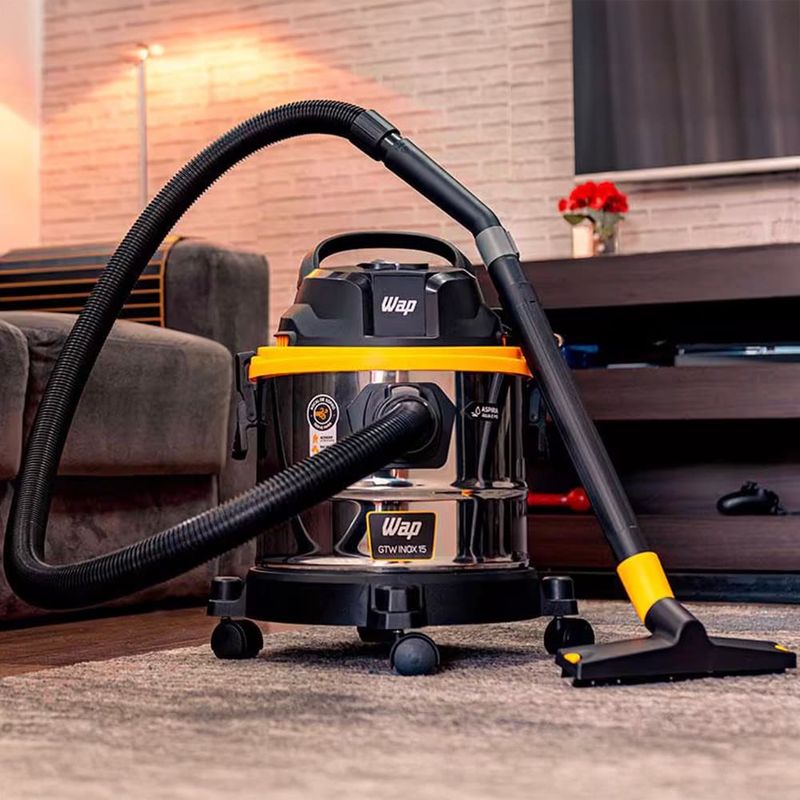 Conte com o inovador Aspirador de Pó e Água, Wap GTW Inox 15, para facilitar suas tarefas. Moderno, prático e eficiente, este aspirador possui uma incrível potência de 1700W, capaz de aspirar qualquer tipo de sujeira, seja ela seca, úmida ou líquida, em qualquer ambiente. Seu resistente recipiente em inox não apenas aumenta sua durabilidade, mas também realça seu design moderno e funcional.O Aspirador de Pó e Água Wap GTW Inox 15 vem acompanhado de três extensões retas, uma mangueira de 1,7 metros, cabo elétrico de 2,5 metros, bico múltiplo e bico canto e escova. Esses acessórios garantem um maior alcance e proporcionam mais conforto durante a limpeza. Além disso, o aspirador possui um bocal de sopro que auxilia na limpeza de locais de difícil acesso e, também, pode ser usado para encher infláveis, acender churrasqueiras ou soprar folhas. O porta-acessórios integrado mantém tudo organizado, tornando seu trabalho mais rápido e eficiente. Com a alça e rodas para transporte, o aspirador oferece maior mobilidade durante a faxina e alcança facilmente os cantos mais difíceis com seus acessórios. Robusto e eficiente, é um equipamento projetado para lidar com a limpeza diária com intensidade.Garanta agora mesmo este moderno Aspirador com o padrão de qualidade já reconhecido da marca WAP.