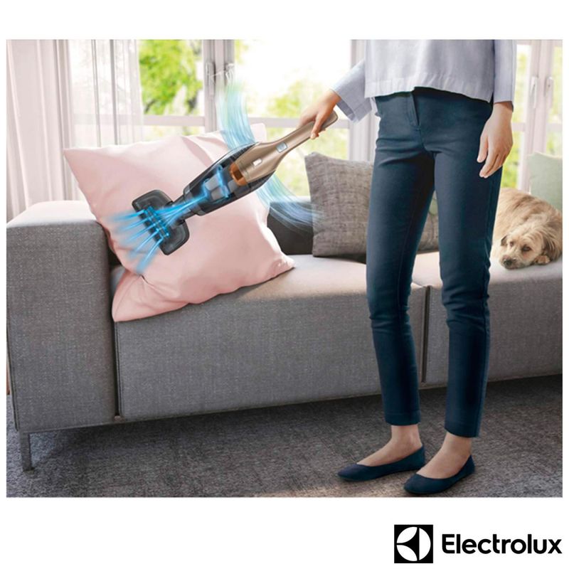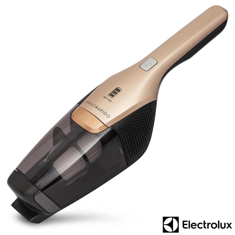 Com filtro coletor, sem Fio e Tecnologia CycloneDestaques Filtro HEPASistema de tripla filtragem com filtro HEPA, que garante a remoção de até 99,9% das impurezas, ácaros e fungos do ambiente. Mais saúde para você e sua família.Exclusivo Bocal Pet CareIdeal para remover pelos de animais de estimação, este bocal remove aquelas sujeiras que ficam enroscadas entre as fibras e fios de tecido.2 em 1 sem fioAlém de poder ficar exposto em qualquer parte da casa, pode ser usado como aspirador vertical ou de mão, para limpar toda a casa e carro com praticidade.Bateria de Lithium 18V com indicador LEDA bateria do ERG26 é de Lithium e dura até 45 minutos fora do carregador, garantindo autonomia durante a limpeza. Além disso, o indicador LED avisa quando seu Ergorapido está carregando ou com carga completa.Bocal Pisos com luz LEDIdeal para iluminar superfícies escuras, cantos e a parte de trás dos móveis.2 velocidades + tecnologia CycloneAlto poder de sucção para uma limpeza completa. Evita que a passagem de ar seja obstruída.Sistema Brush Roll CleanPrático pedal que ao ser acionado corta fibras e fios que estiverem presos no aspirador.Tecnologia 180° EasySteerCom movimentação precisa, o Ergorapido gira completamente para os lados, facilitando a limpeza de todos os cantos.Bocal para cantos/frestas com escovaRecomendado para cantos, frestas e lugares de difícil acesso, como janelas e teclados. Seu design achatado permite limpar lugares que outros bocais geralmente não alcançam.Reservatório para pó de 420mlCapacidade ideal para uma limpeza completa.Tecnologia Bagless com recipiente transparenteNão utiliza saco para pó. Mais econômico e fácil de limpar. Saiba a hora exata de esvaziar o recipiente para pó transparente do seu Ergorapido.Base para carregarMais conveniência enquanto seu Ergorapido recarrega as energias. CaracterísticasTipo: Aspirador de PóCapacidade: 420 mlTipo de Coletor: Filtro HepaRoda para Transporte Quantidade de Bocais: 2 Bocais, sendo um bocal para cantos e frestas com escova e um bocal pet carePorta-AcessóriosEspecificações TécnicasModelo: ERG26Consumo de Energia: Bateria LithiumPotência: 18 VVoltagem: BivoltCor: DouradoEAN: 7896347159234Garantia: 12 meses Dimensões e PesoDimensões do produto sem embalagem (AxLxP): 1070 x 263 x 150 mmDimensões do produto com embalagem (AxLxP): 690 x 303 x 162 mmPeso do produto sem embalagem: 3,6 kgPeso do produto com embalagem: 4,71 kg Itens Inclusos01 Aspirador Ergorapido com unidade de mão01 Base para recarga01 Bocal para cantos e fresta com escova01 Bocal pet careManual do produtoCertificado de garantia